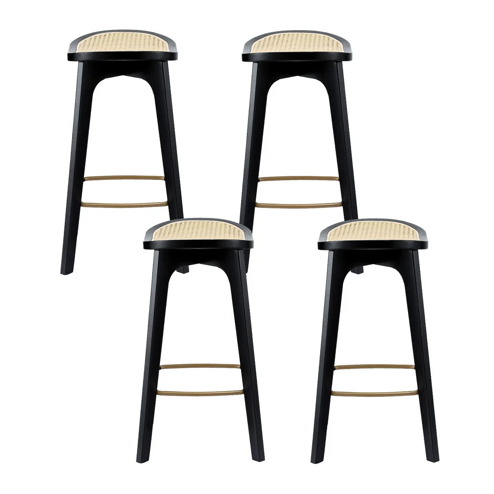 Upgrade your home with these elegant backless rattan bar stools, featuring a stylish two-tone design and a comfortable woven rattan seat. The sturdy bamboo construction ensures durability, while the gold-painted metal footrest adds a touch of sophistication. With a 120kg weight capacity and anti-slip floor protectors, these stools offer reliable stability and safety. Perfect for kitchen counters or bar areas, this set of 4 stools combines functionality with modern aesthetics. Easy to assemble and built to last, they're the perfect addition to your space. Order now and elevate your seating experience!