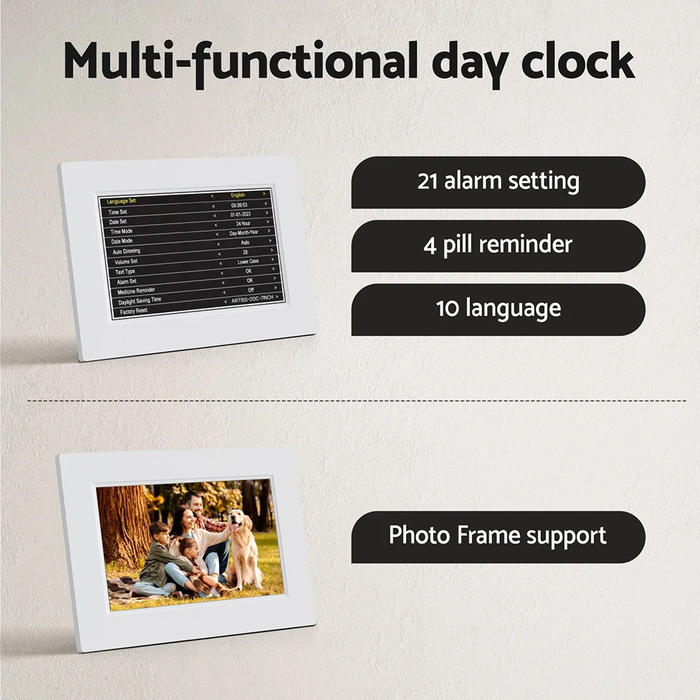 Simplify your mornings and evenings with this versatile Digital Day Clock. Featuring a large, clear, and eye-catching 8-inch LCD display, it can be positioned on your desk or mounted on the wall for optimal visibility. The auto-dimming function adjusts brightness automatically for comfortable viewing throughout the day and night.