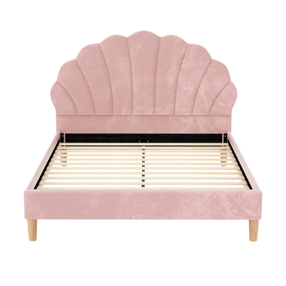 Elevate your bedroom with the Artiss ROSY Bed Frame, featuring a chic scallop-shaped bedhead upholstered in soft pink velvet. Crafted with a durable wooden frame and legs, this bed combines timeless design with reliable support for the mattresses (sold separately). Its easy-to-assemble structure and modern aesthetic make it ideal for any rooms or compact spaces. The plush velvet fabric offers easy maintenance while adding a touch of luxury. Backed by a 1-year warranty, this bed frame balances style and practicality for Australian homes.