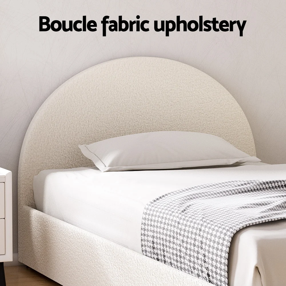 Elevate your bedroom with the Artiss ELLA Gas Lift Bed Frame, featuring luxe boucle fabric upholstery and a padded bedhead for timeless comfort. The hydraulic lift base offers hidden storage space, while reinforced wooden slats and smooth edges ensure enough weight capacity. Designed for Australian-sized mattresses, this bed frame combines modern elegance with practical storage solutions.