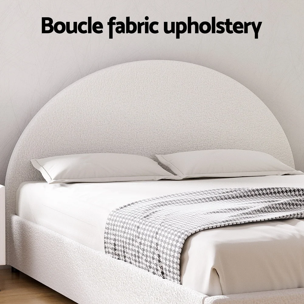 Elevate your bedroom with the Artiss ELLA Gas Lift Bed Frame, featuring luxe boucle fabric upholstery and a padded bedhead for timeless comfort. The hydraulic lift base offers hidden storage space, while reinforced wooden slats and smooth edges ensure enough weight capacity. Designed for Australian-sized mattresses, this bed frame combines modern elegance with practical storage solutions.