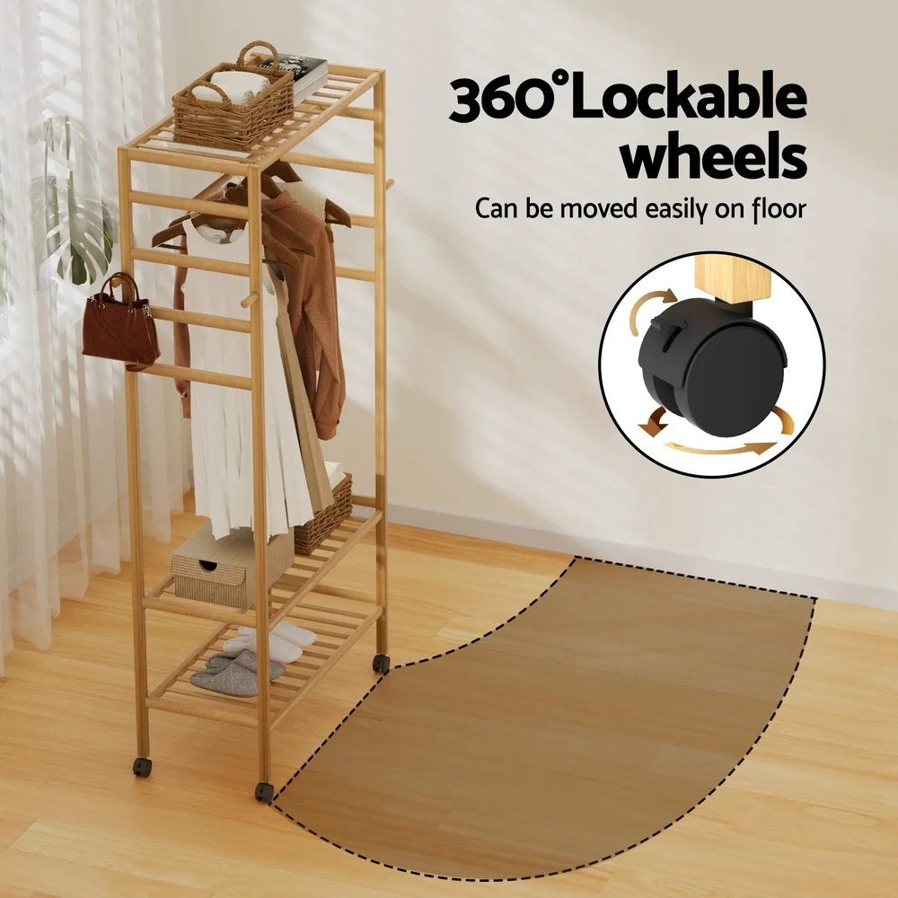 The Artiss Clothes Rack is a versatile solution for your wardrobe needs, combining style and functionality. Crafted from sturdy bamboo with metal fixings, it offers durability and elegance. The wide storage area, hanging rail, and side hooks provide ample space for clothes, scarves, and more. Its lightweight build and 360 lockable wheels ensure easy portability and stability, while the smooth surface allows for hassle-free cleaning. Ideal for homes, laundry rooms, or fashion studios, this garment rack is both practical and stylish.