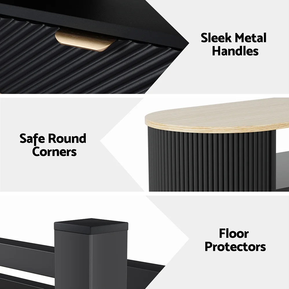 The Artiss Coffee Table combines modern design with practicality. Its spacious 110cm tabletop is perfect for holding drinks, books, or decorative items, while the two large drawers and open shelf provide ample storage for everyday essentials. The elegant fluted design and sleek metal handles add a touch of sophistication to any room. Ideal for living rooms, offices, or lounges, this coffee table is durable, easy to assemble, and easy to clean—offering both functionality and style in one piece.