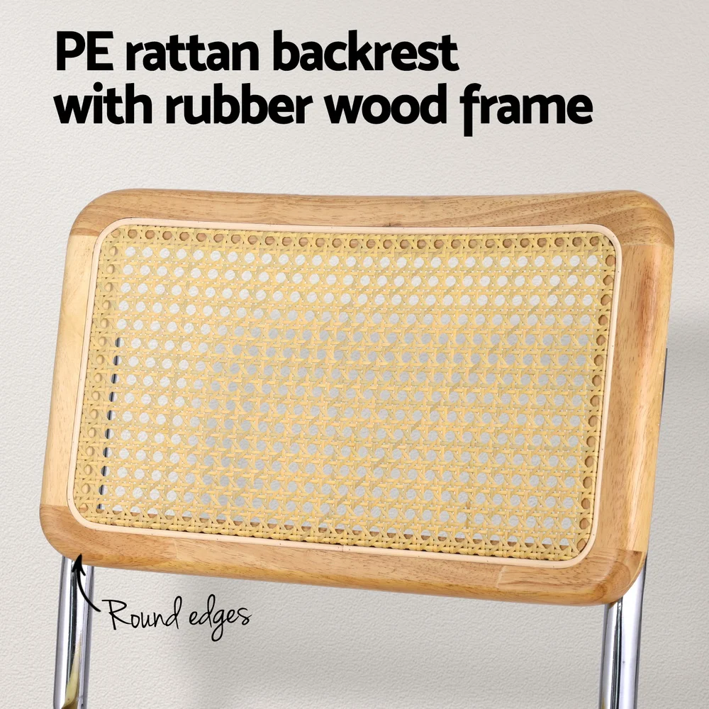 Enhance your dining experience with the Artiss Felix Dining Chair Set. Crafted with a cantilevered stainless-steel frame, these chairs offer a sleek and modern look that will complement any dining space. The rounded edges add a touch of elegance, while the rubberwood frame ensures durability and stability. The chairs feature a woven PE rattan backrest, allowing for adequate ventilation throughout the dining experience and providing both comfort and style. The velvet padded seat, filled with high-resilience foam, offers a plush seating experience. With anti-slip feet, these chairs provide stability and prevent any unwanted movement. Additionally, the easy assembly process allows you to enjoy these chairs in no time. Upgrade your dining area with the Felix Dining Chair and indulge in both comfort and sophistication.