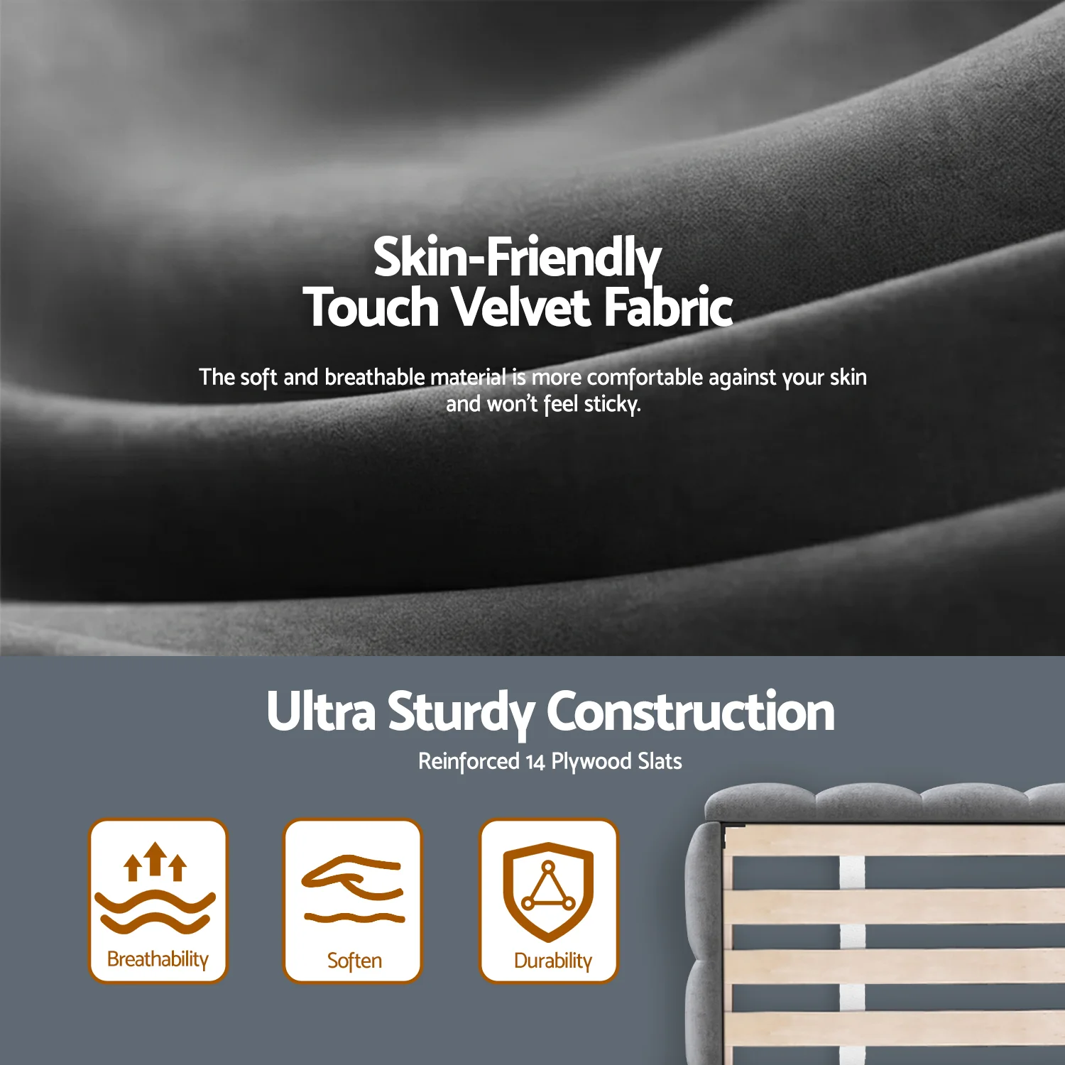 The Artiss Double Bed Frame combines elegance and function with its cloud-inspired plush velvet headboard and modern platform base. Featuring a reinforced plywood-pine frame with 14 support slats and durable metal fixings, it holds 300kg and fits Double mattresses (137cm x 190cm). The smooth-edge velvet upholstery adds luxury while ensuring safety. Quick assembly completes this bedroom upgrade.