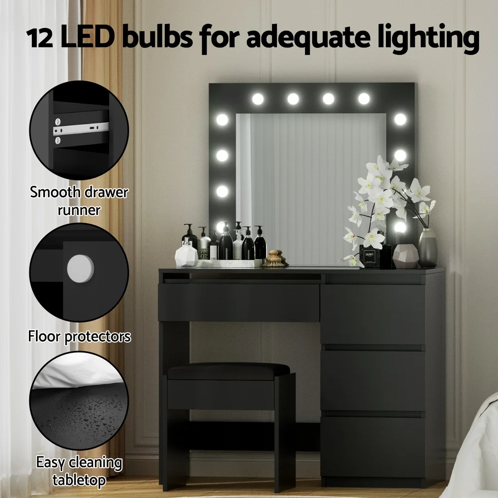 Artiss Dressing Table Vanity Desk Set Stool 10 Led Bulbs Black