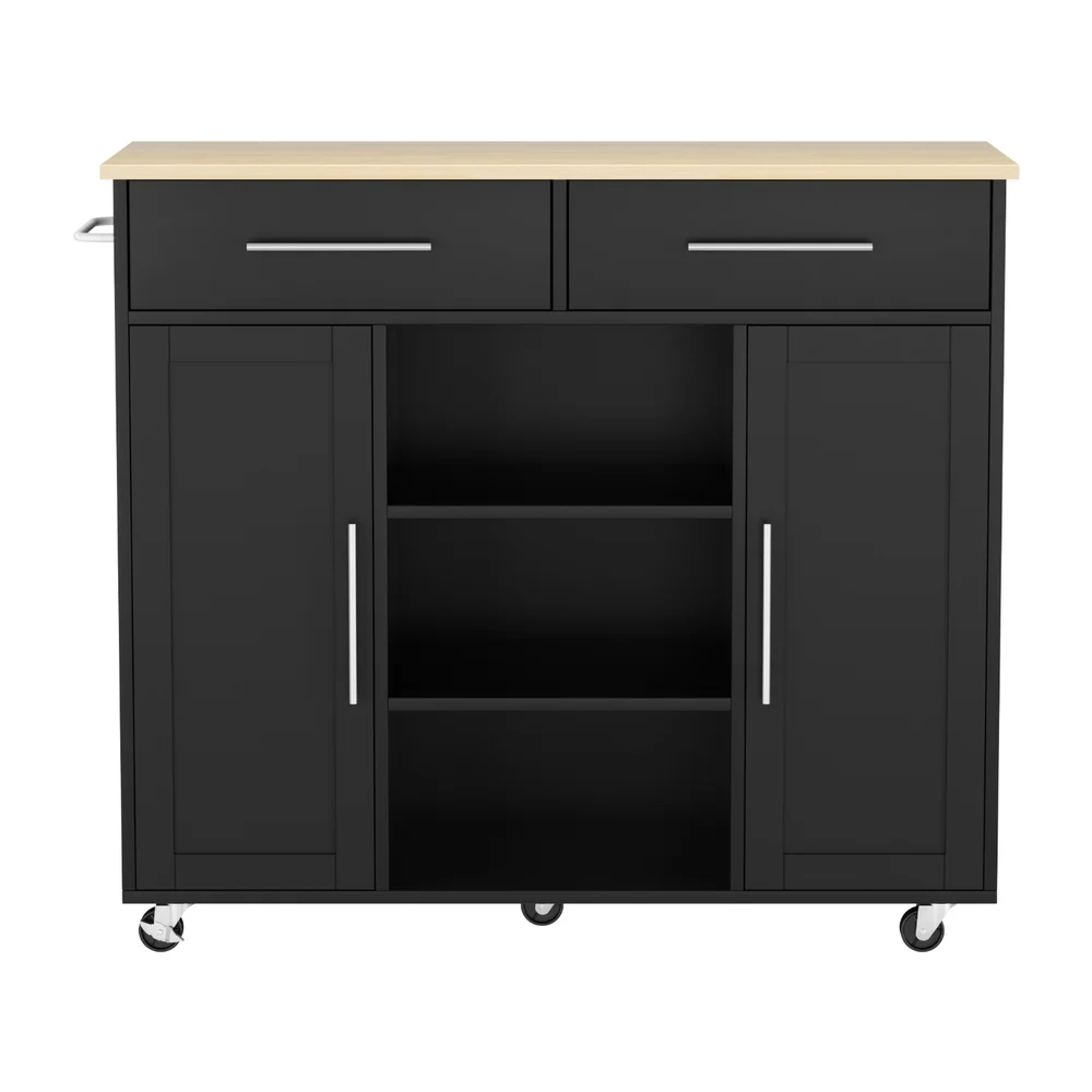Ideal for kitchens, dining areas, or bars, it functions as a mobile island, serving cart, or prep station. The spacious top provides ample room for serving dishes, displaying desserts, or extra counter space.