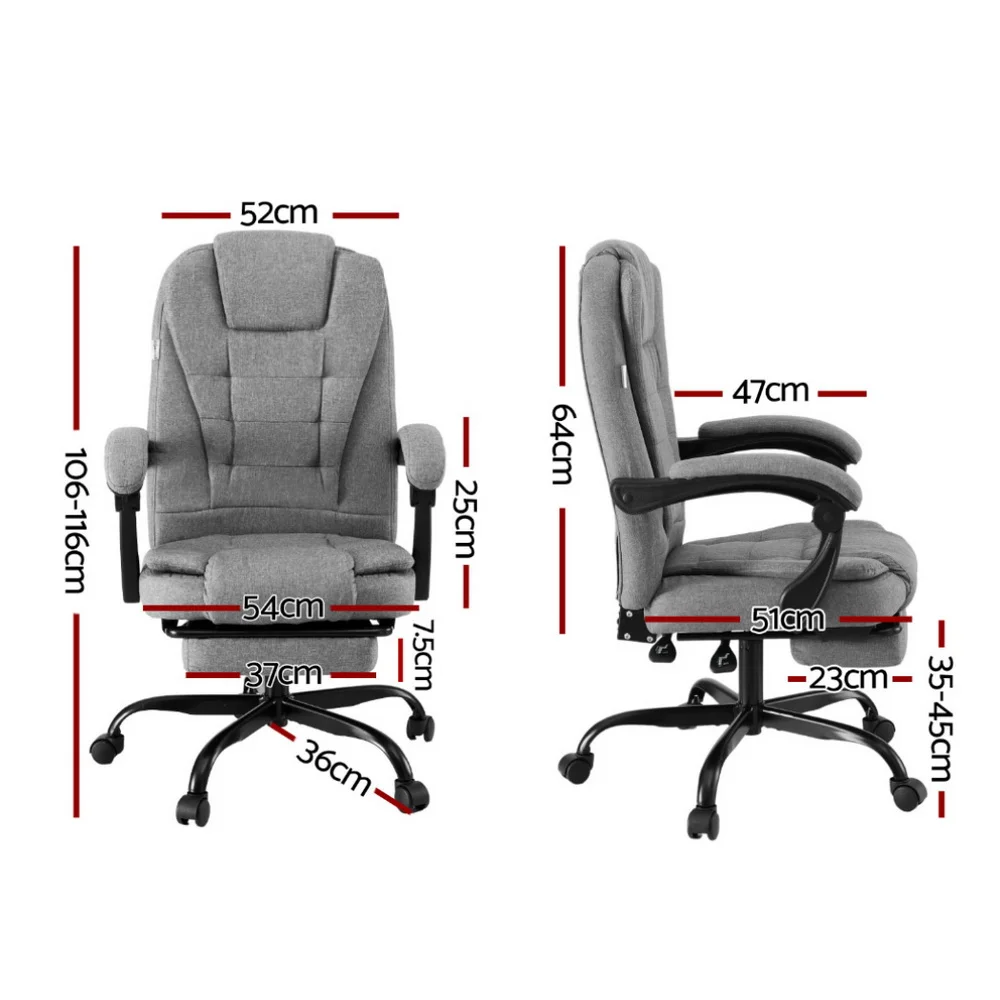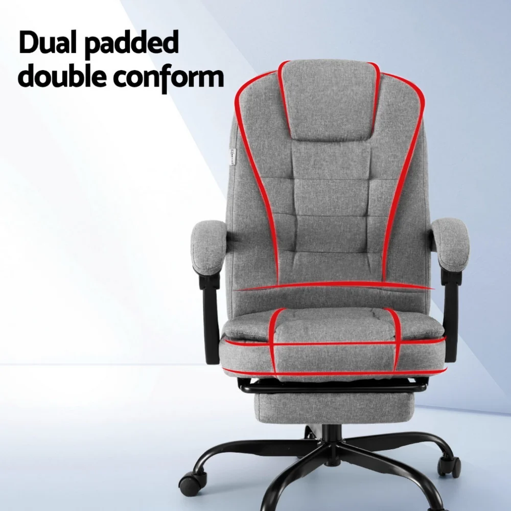 Upgrade your workspace with the Artiss Executive Office Chair, combining style, comfort, and functionality. This high-back chair offers exceptional support for your upper body, making long workdays more manageable. The thick fabric padding on the back and seat provides plush comfort, while the padded armrests and retractable footrest ensure a relaxing experience. Ideal for any office setup, this chair's sleek design complements both modern and traditional interiors.