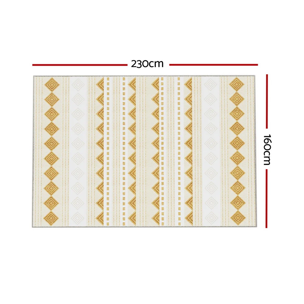 Enhance your home décor with an Artiss Ella Floor Rug. Made from plush crystal velvet, Artiss rugs are water-repellent, fade-resistant, and have a rich velvety soft feeling that keeps your floors warm and comfortable. Its chic bohemian-style design suits a wide variety of interior styles thanks to its neutral hues. It does not shed any fibres even after long use thanks to its quality stitching, making it ideal for anyone who wants a hassle-free rug. The rug is not only washable for easy maintenance, but it also features stylish knitted hemming and a base of anti-slip granules to prevent tripping. Not least, the rug is easy to roll and fold for storage if necessary. For a stylish way to keep your floors warm and protected, choose an Artiss Ella Floor Rug today.