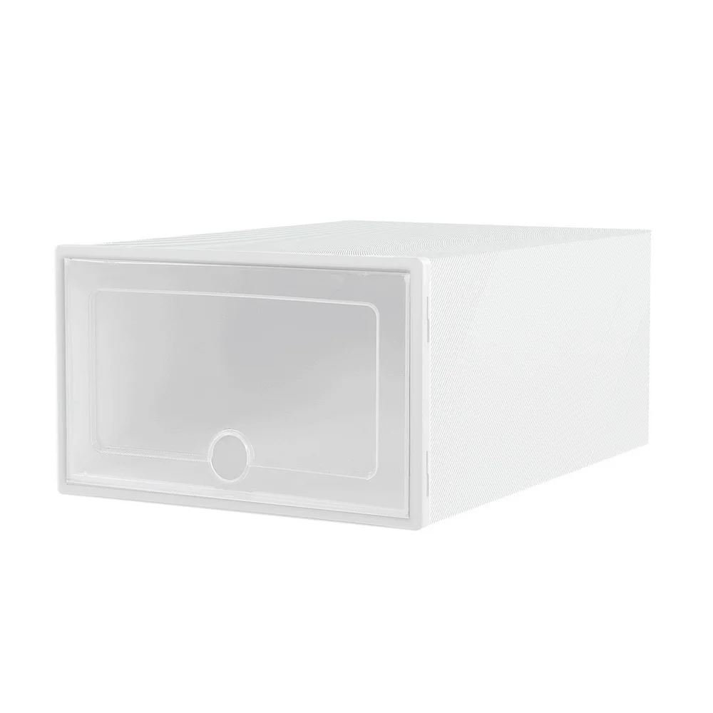 For home shoe storage, you can't beat the Abel Shoe Storage Boxes from Artiss. With a foldable and stackable design, these shoe boxes are not only space-saving but also incredibly convenient. Made from premium PP plastic, they are durable and can hold up to 5kg of weight per box. Each box is easily washable thanks to its smooth surface. The ventilated hole ensures proper air circulation, keeping your shoes fresh and odour-free. The clear flip-out lid allows for easy access to your shoes, while the multifunctional design makes them suitable for various uses. Assembly is a breeze, making these shoe boxes a hassle-free addition to your home. With Abel shoe boxes, you can keep your shoes organized and protected in style.