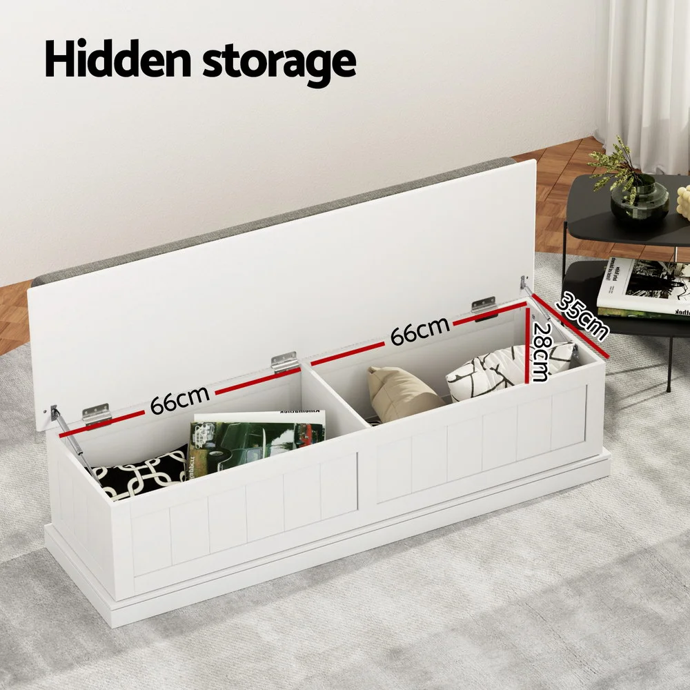 Our Artiss Storage Ottoman combines functionality and style, offering a chic addition to any room. Upholstered in soft, durable faux linen fabric, it features a comfortable, padded top that doubles as a seating option. The hinged lid opens to reveal ample storage space for blankets, books, or toys. With its compact design and versatile appearance, this ottoman is ideal for small spaces, enhancing decor while providing a practical storage solution.
