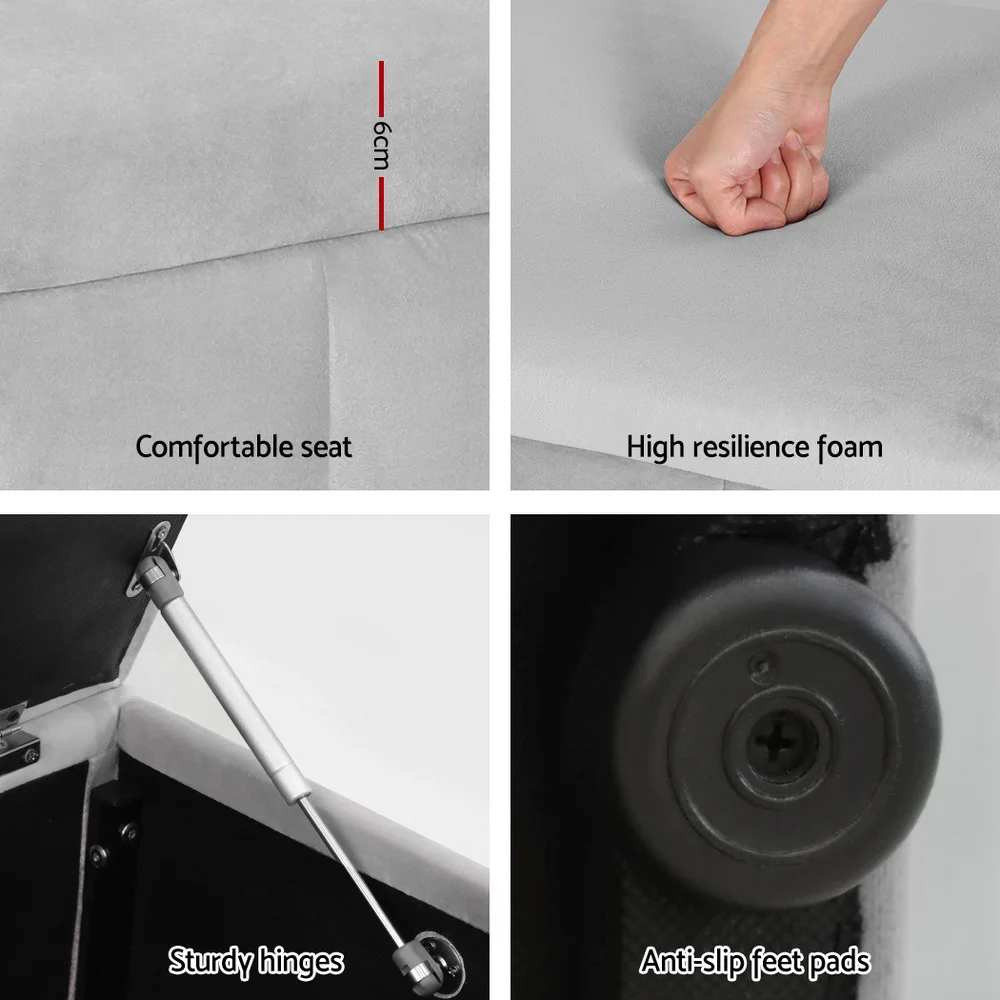 Coffee Table Storage Ottoman - Velvet Padded Blanket Box Bench IRENE GREY