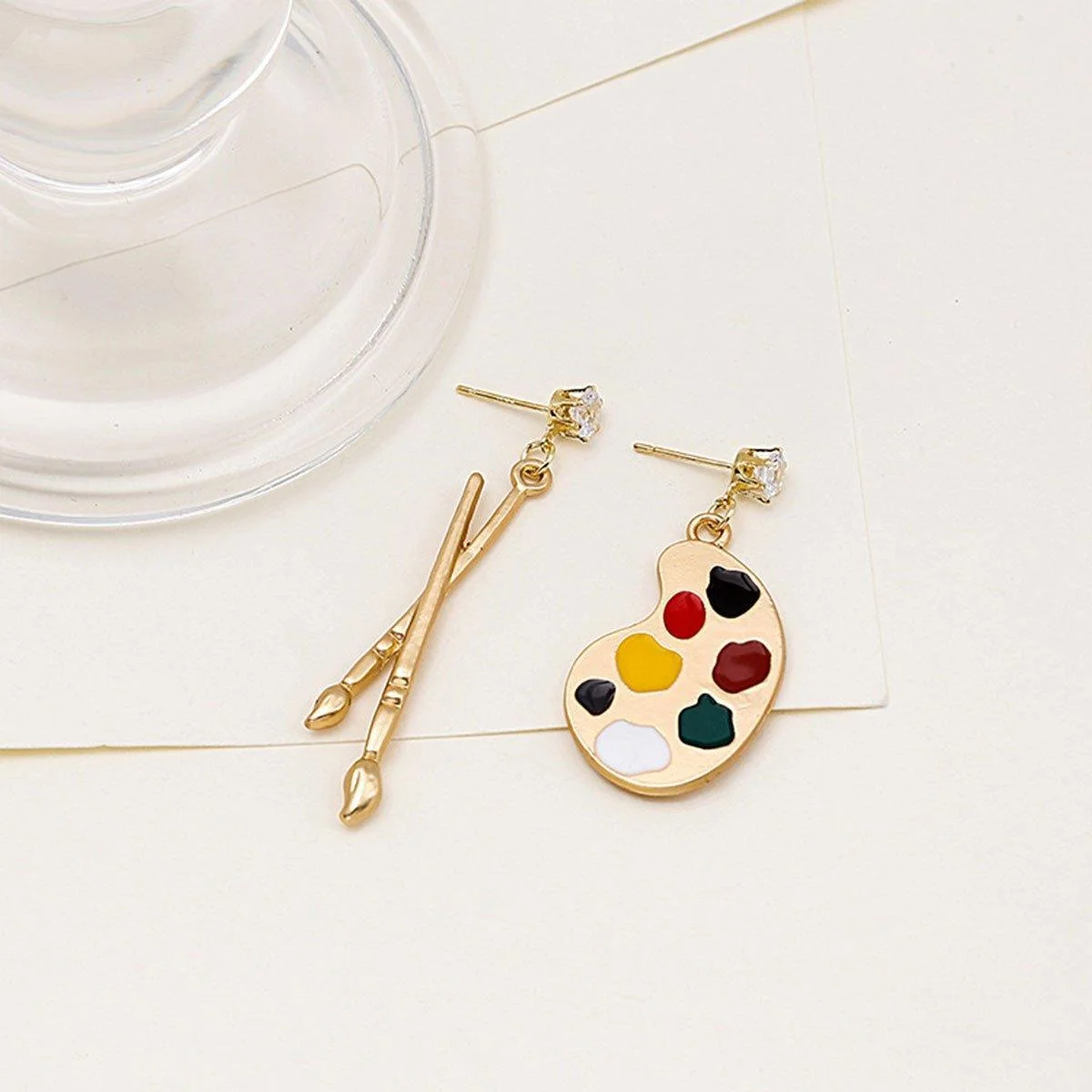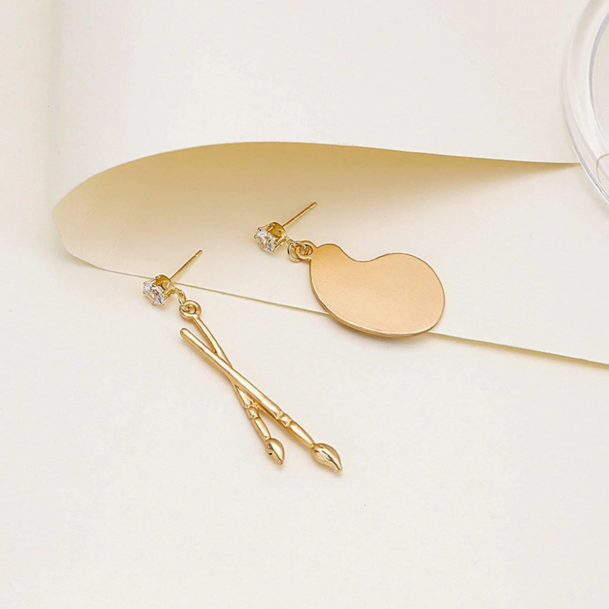 Elevate your accessory collection with our Artistic Asymmetric Earrings featuring a creative brush and drawing board design. These earrings are perfect for those who love to express their artistic flair and embrace a literary temperament in their fashion choices. Crafted from high-quality alloy, these earrings offer durability while maintaining a stylish appearance. The asymmetric design adds a unique and playful twist to your outfit, making these earrings a perfect statement piece for any occasion, whether it's a casual day out or an art event.