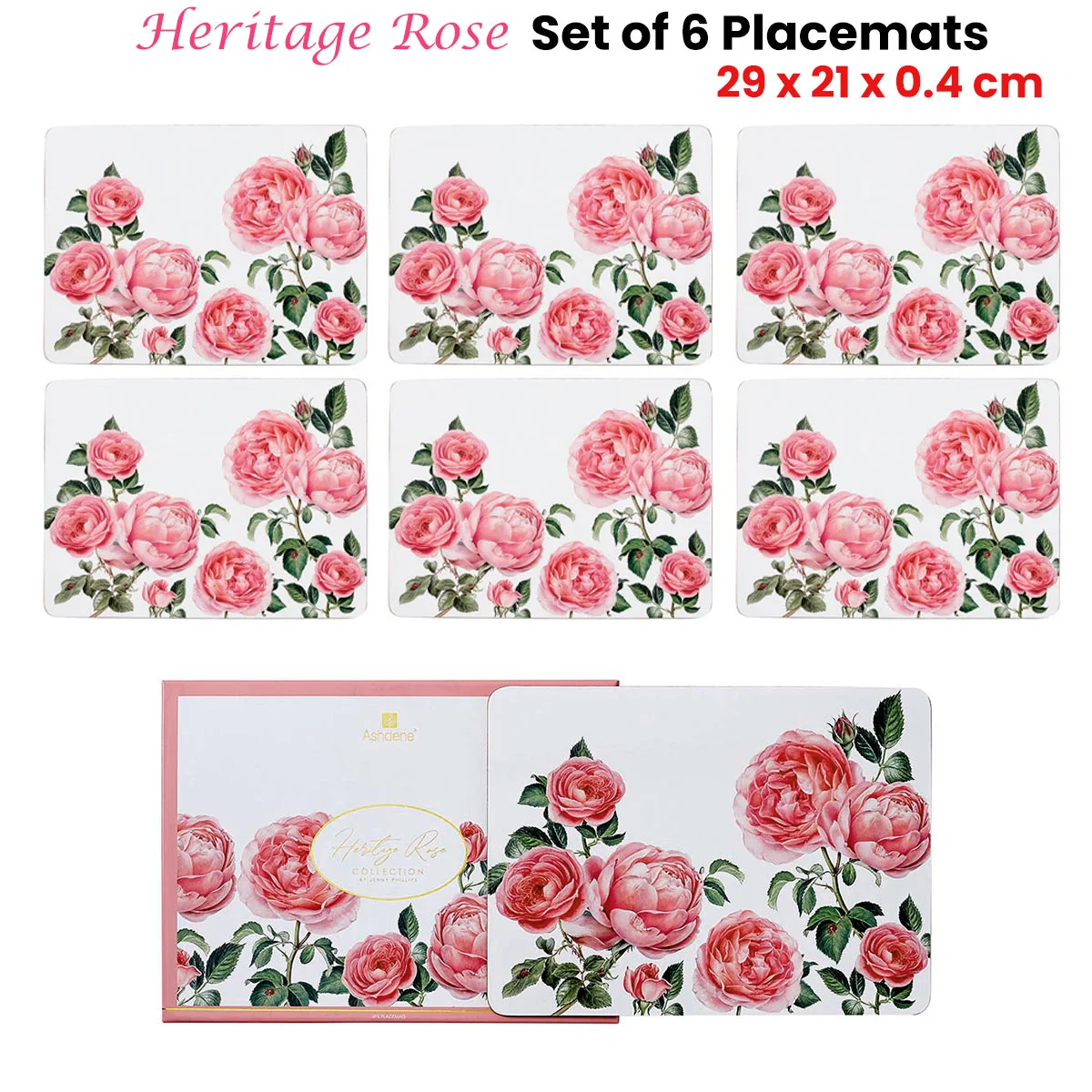Bring a touch of vintage elegance to your dining table with the Ashdene Set of 6 Heritage Rose Table Placemats 29x21x0.4 cm. These placemats are adorned with a beautiful, classic rose design in white, green, pink, and red hues that instantly adds charm and sophistication to your dining experience. Made with a durable, easy-to-clean surface, they're perfect for both everyday meals and special occasions. Whether you're hosting a dinner party or just enjoying a cosy meal at home, these Heritage Rose placemats bring timeless beauty to any setting. Set of 6 x placemats. Designed in Australia. Adorned with a Heritage floral design.