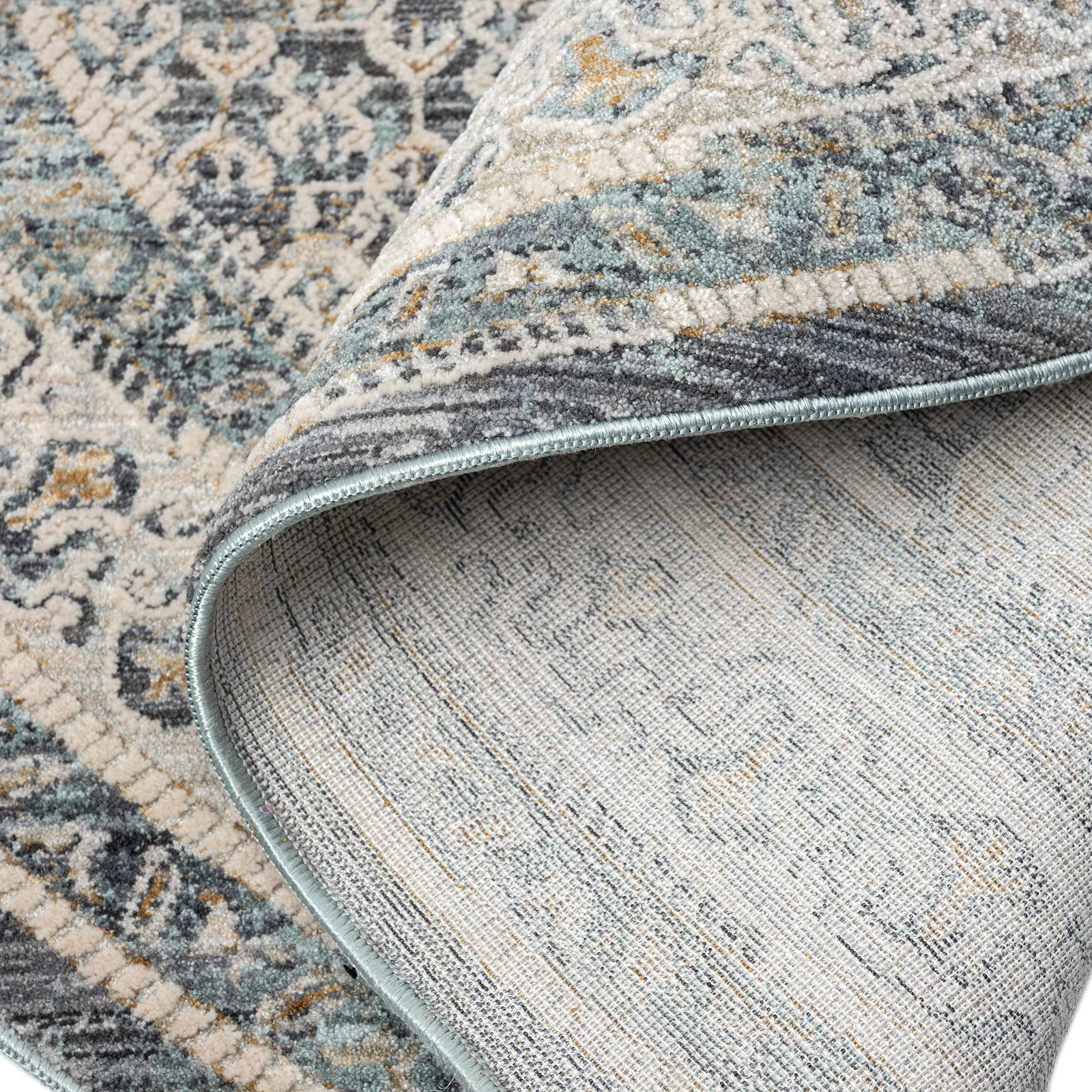 This exquisite rug is the perfect foundation for modern farmhouse ensembles that effortlessly anchors your look. It's made in Turkey and crafted from a blend of cross-woven pile using multi-textured polyester fibers, power-loomed into a soft cotton base, making it resistant to stains and spills. The Oriental-inspired pattern with scrolling botanical accents and a bordered motif give this piece a touch of traditional appeal, while the distressed design elevates the look with vintage charm. The muted, harmonious color palette used in these rugs make them blend into a variety of spaces. Plus, its low .25" pile height is easy to clean and works well in high-traffic rooms like the kitchen or bathroom floor space in your home and will complement almost all color schemes. This highly decorative collection also contains shed-resistant and anti-static properties and is easy to maintain. Collection: Aubrey Collection Colour: Charcoal Shape: Rectangle Style: Abstract, Traditional Construction: Crosswoven, Power-loomed Main Materials: 100% polyester Backing Materials: Cotton Pile Height (approx.): 8mm Total Thickness - Pile + Base (approx.): 10mm Density (Points per SQM): 630.000 Distressed Finish (Y/N): N Fringes (Y/N): Y Outdoor (Y/N): N Non-Slip (Y/N): N Reversible (Y/N): N Country of Origin: Turkey Package Includes: 1 x Area rug Warranty: 12 months