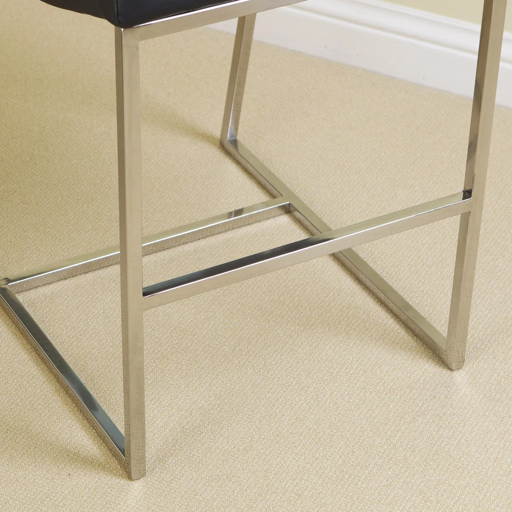The Auburn Black Leather Barstool provides modern style with simple comfort. Black corrected grain bonded leather and stainless steel make it an ideal piece for any kitchen or dining area.