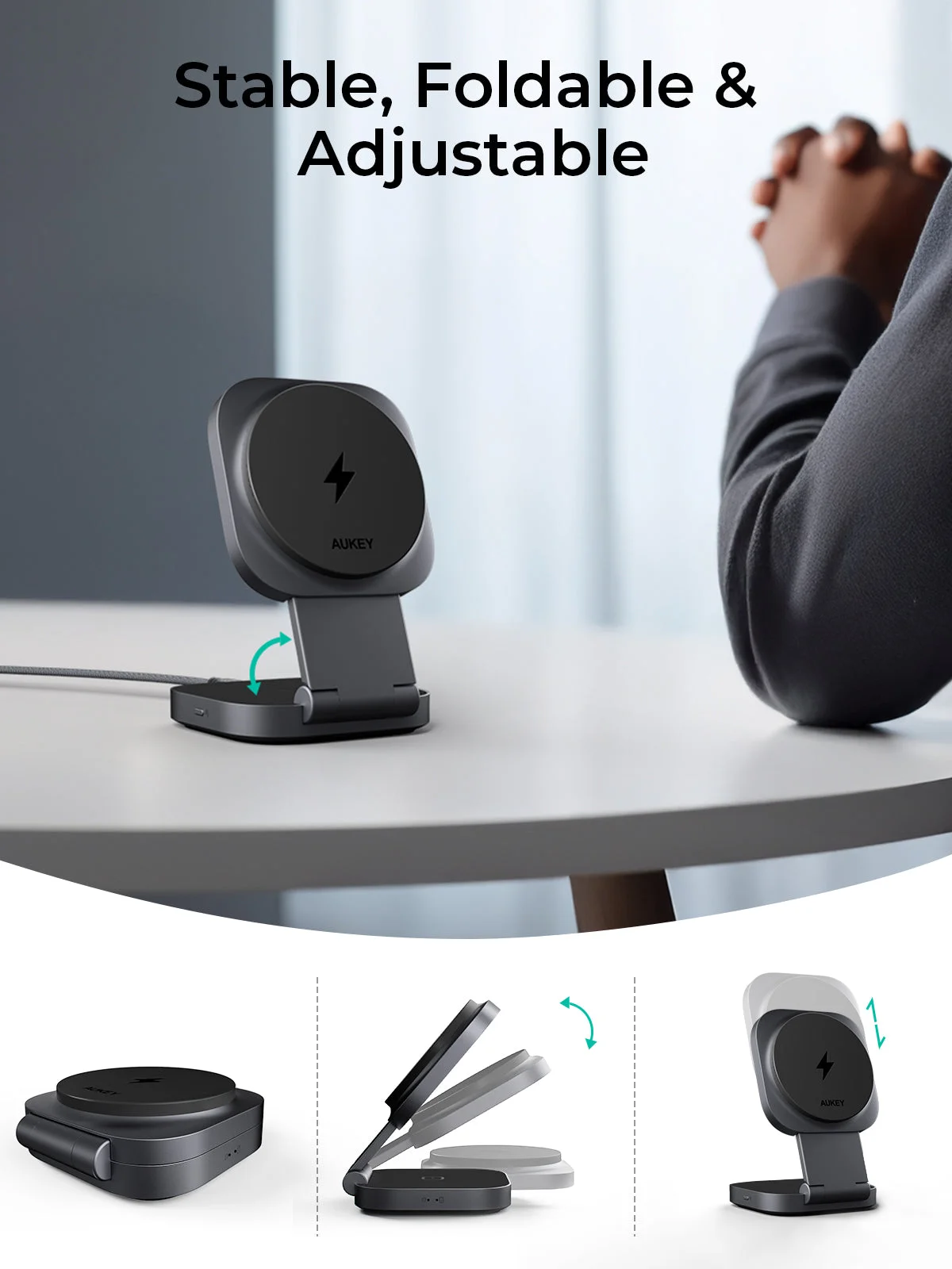 Aukey MagFusion L Qi2 Foldable 2 In 1 Magnetic Wireless Charger (LC-MC211)