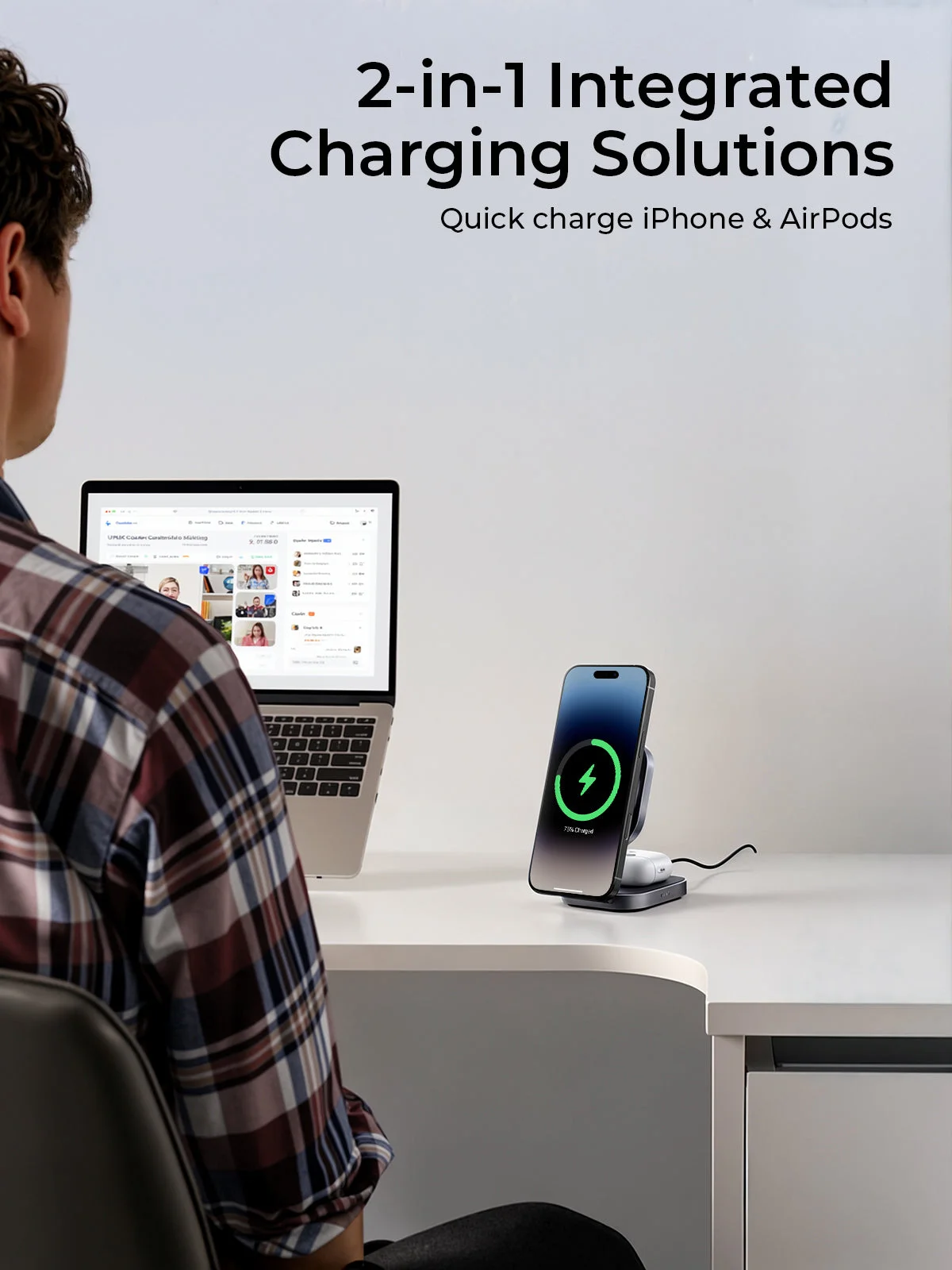 AUKEY LC-MC211 Qi2 Foldable 2-in-1 Magnetic Wireless Charger Charge smarter and faster with the AUKEY LC-MC211, your ultimate on-the-go wireless charging solution. Designed with the latest Qi2 technology, this sleek and compact 2-in-1 magnetic charger powers up your iPhone and AirPods simultaneously with maximum efficiency and style. Whether you're working at your desk or traveling light, the foldable design makes it incredibly easy to carry and set up anywhere. With strong magnetic alignment, your MagSafe-compatible devices snap perfectly into place for stable, hassle-free charging every time. Key Features: Qi2 Certified for next-gen fast, safe, and efficient wireless charging 2-in-1 Charging for your iPhone (MagSafe compatible) and AirPods Foldable & Portable – perfect for travel, commuting, and minimal desk setups Magnetic Alignment for secure, precise placement 15W Fast Wireless Charging (iPhone) + 5W Wireless Charging (AirPods) Sleek aluminum and soft-touch finish for premium feel and durability LED Indicator to show charging status at a glance