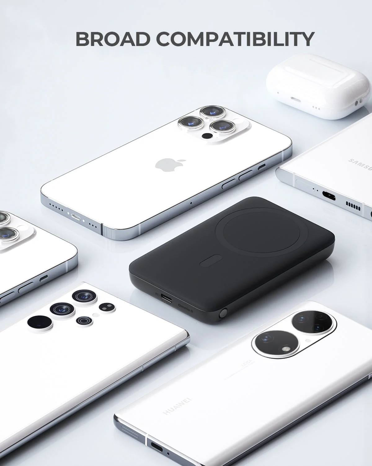 Discover the Aukey 30W Magnetic Wireless MagSafe Power Bank (PB-MS01), the latest solution for efficient charging on the go. Designed to be compatible with iPhone and Android devices, this power bank combines magnetic wireless charging capabilities with versatile wired options, ensuring you stay powered up anywhere.