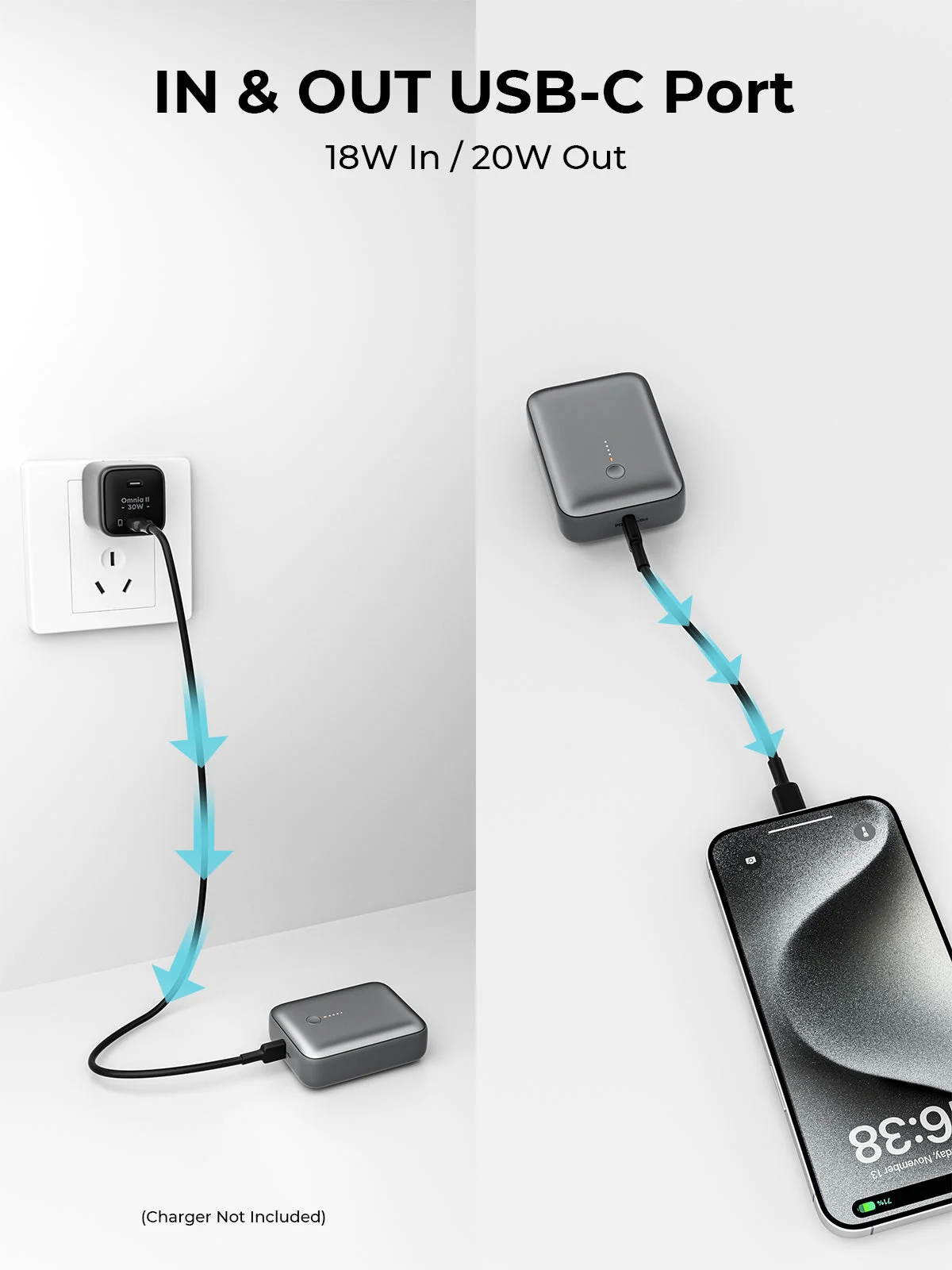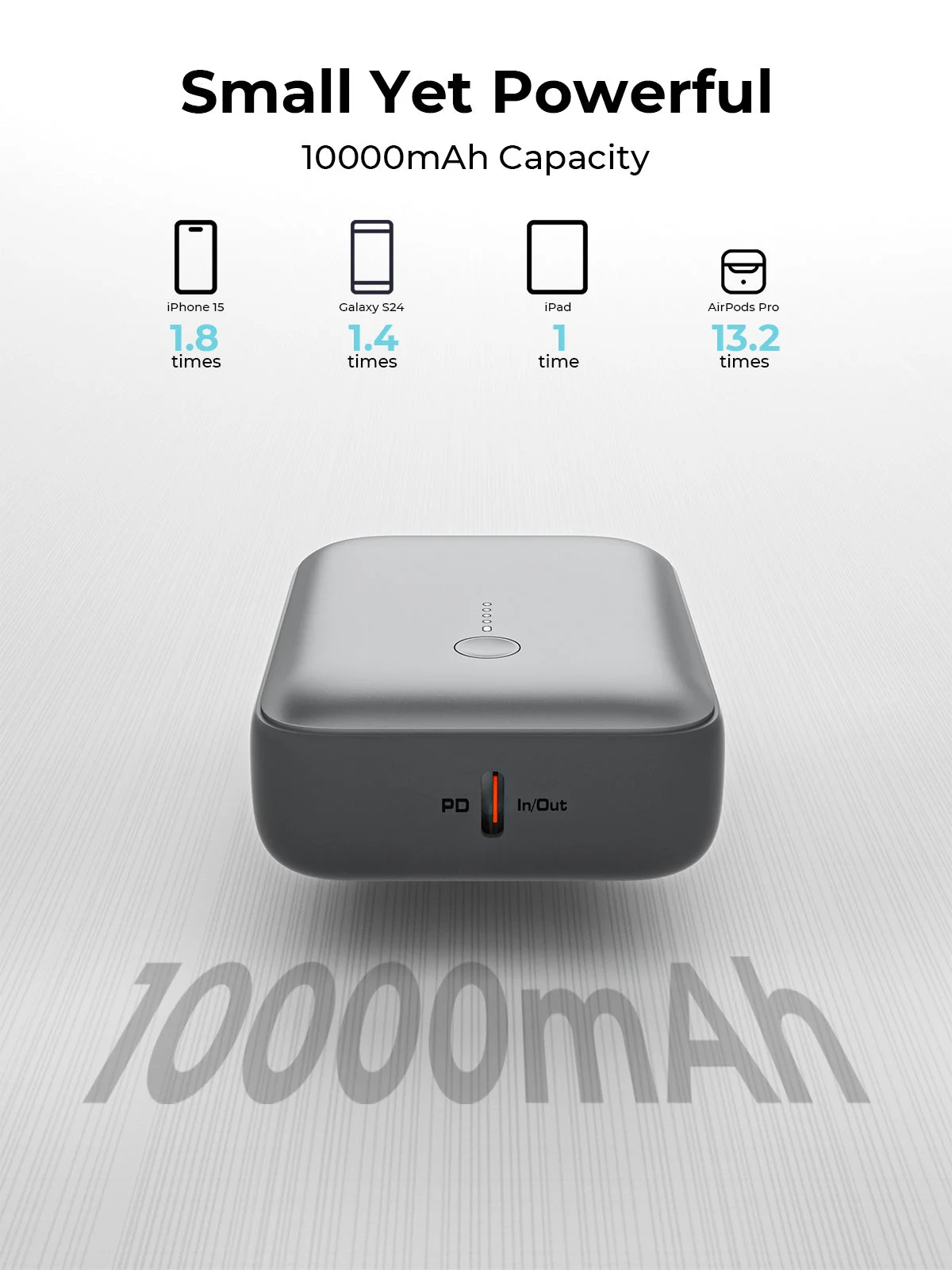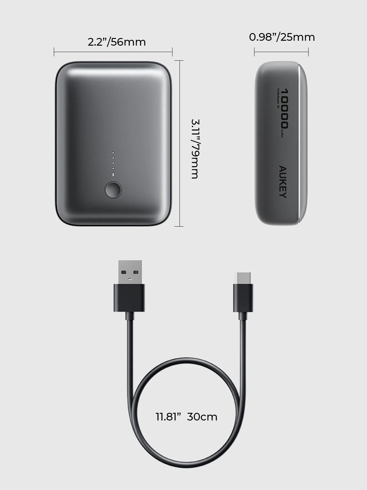 The Aukey PB-Y55 is a 10,000mAh portable charger that delivers fast 20W PD charging, perfect for quickly powering up your iPhone 15 (2 full charges) and other devices. Its ultra-compact, palm-sized design fits easily in your pocket, making it ideal for travel. With dual USB-C and USB-A ports, it supports both Apple and Android devices. Built with advanced safety protections (CE/FCC certified), it ensures secure charging with overcurrent and overheating prevention.