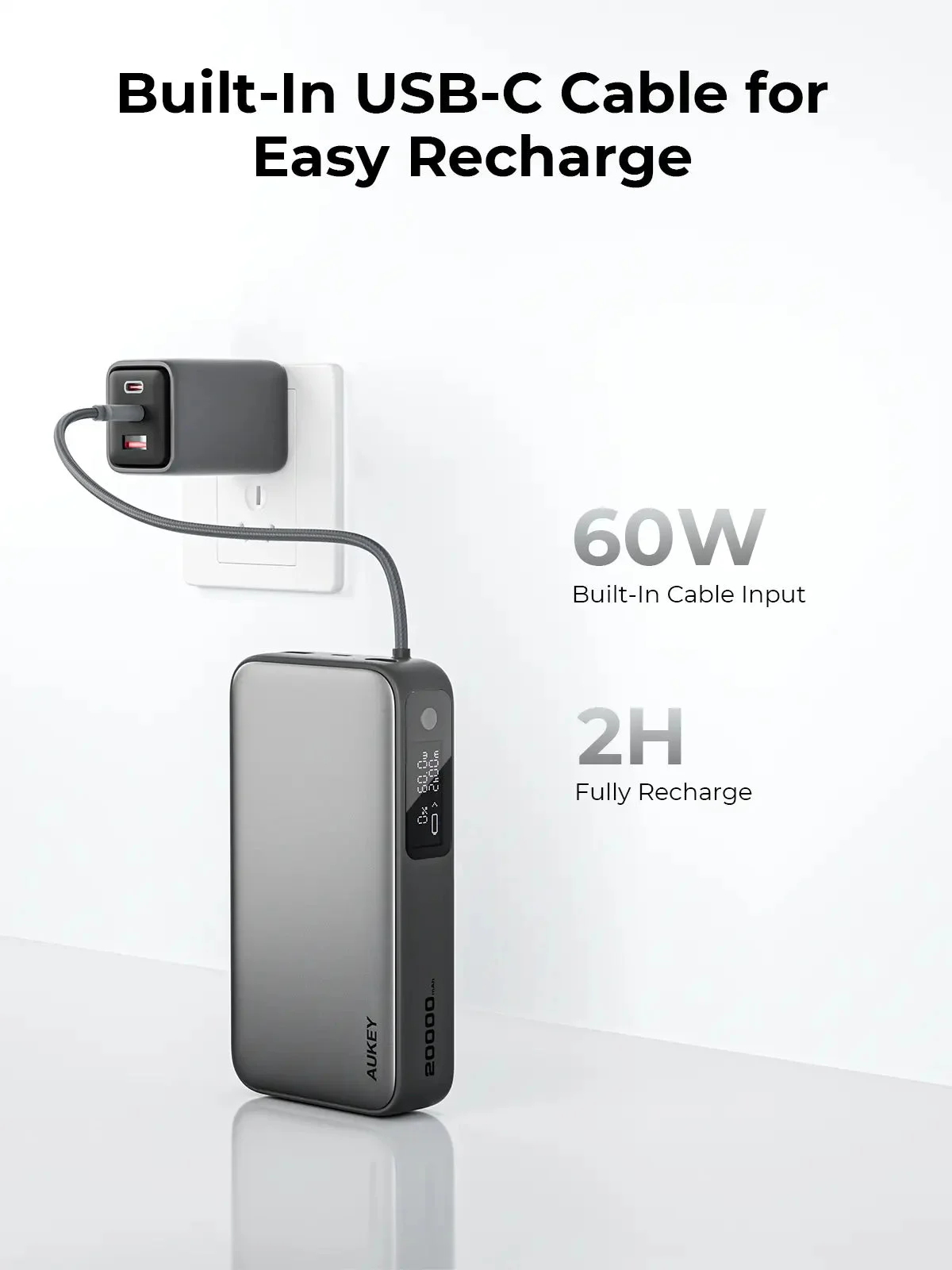 The Aukey Spark Sling 20000 Power Bank (PB-Y48) is a high-capacity portable charger designed to keep your devices powered throughout the day. With a 20,000mAh capacity, it can charge smartphones, tablets, and other USB-powered devices multiple times. Featuring a built-in USB-C cable, this power bank eliminates the need for extra cords, offering a clutter-free charging experience. Its compact and lightweight design makes it easy to carry, while the advanced safety features ensure your devices are protected from overcharging, overheating, and short circuits.