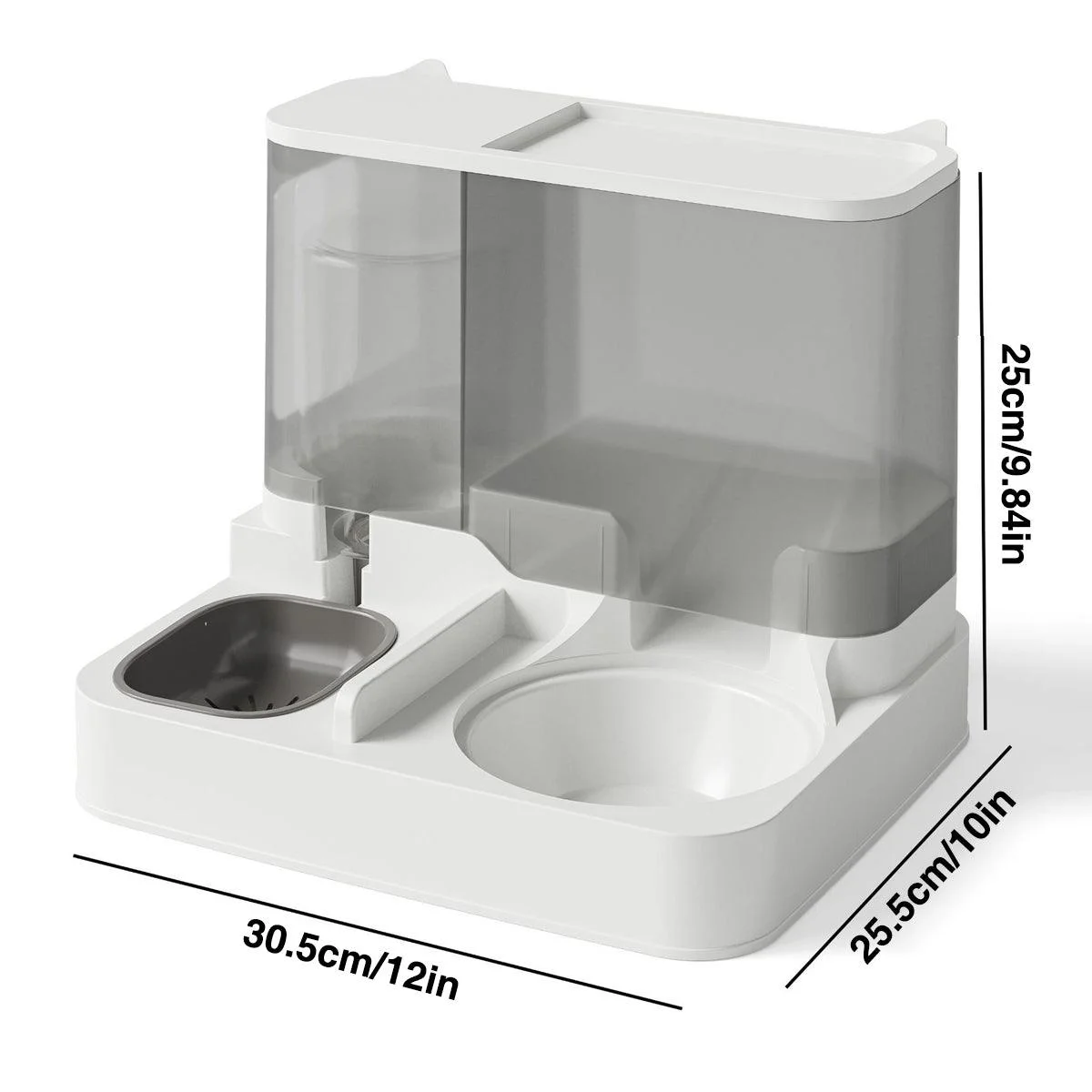 Simplify your pet care routine with this all-in-one automatic feeder and water dispenser. Designed to meet your pet's feeding and hydration needs, it features a 2.8L food storage container and a 1L water tank for continuous access to fresh food and water. The ergonomic 45° tilted plastic bowl design ensures comfortable feeding while protecting your pet’s spine. Made with durable and safe materials, this feeder promotes hygiene and convenience, making it a perfect choice for busy pet owners.