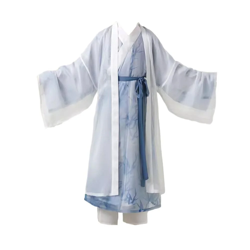 Crafted from comfortable fabrics suitable for the cooler days of autumn, this Hanfu set features a serene blue and white color palette, adorned with subtle traditional patterns.
