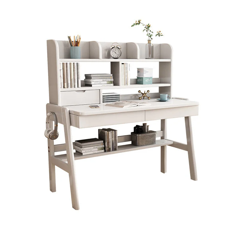 Take your workspace to the next level with this Solid Wood Study Desk! Built with durable rubberwood, its features include a high shelf, drawers, and ample shelves for keeping your work organized. You can also hang a bag on its hanger for easy access. Get ready to take on any challenge!