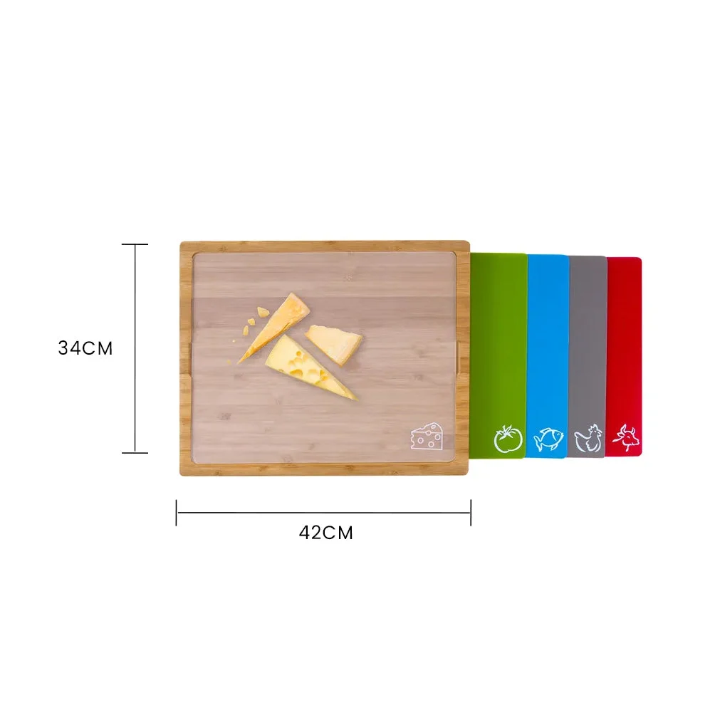 This set of 5 colour coded chopping boards is designed to be durable, practical and stylish. It comes with 5 coloured inserts that ensure complete hygiene in your kitchen by preventing cross-contamination - an accidental discovery that might just redefine your cooking experience.