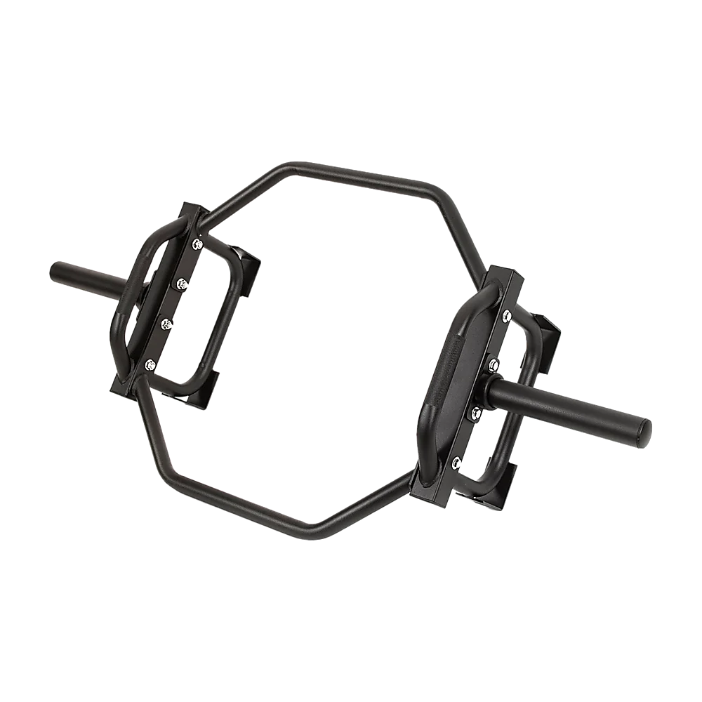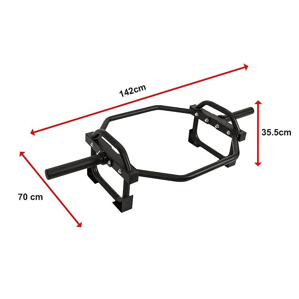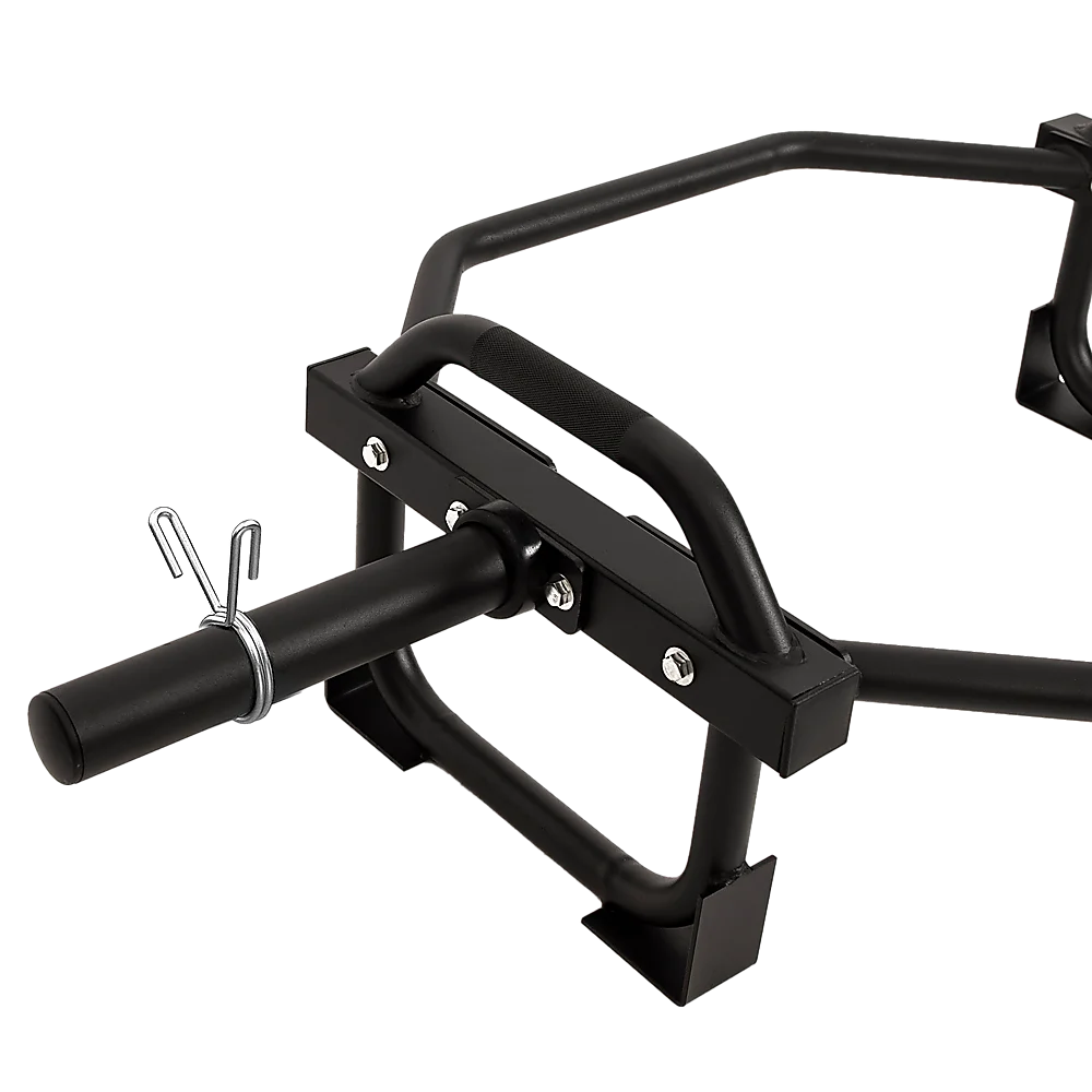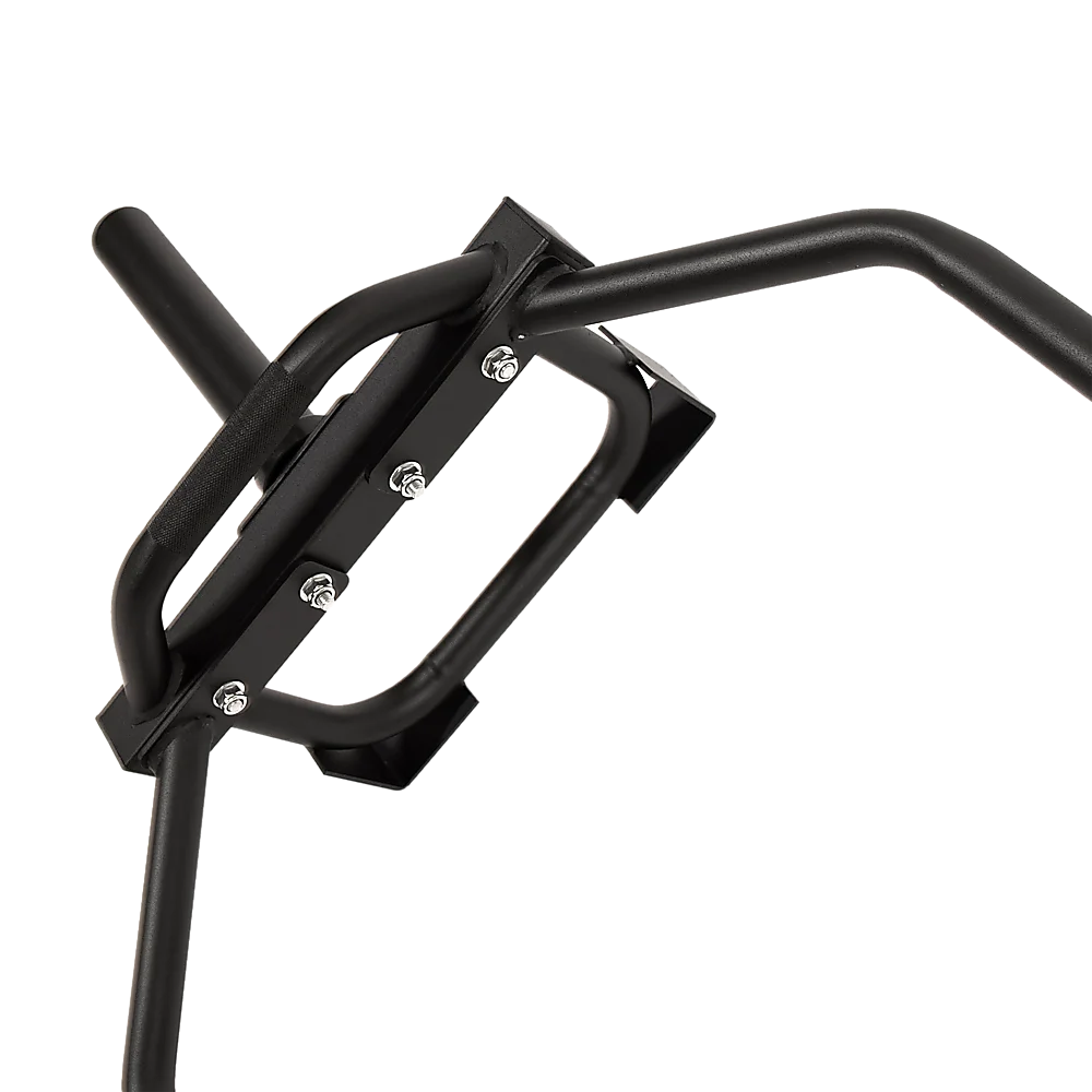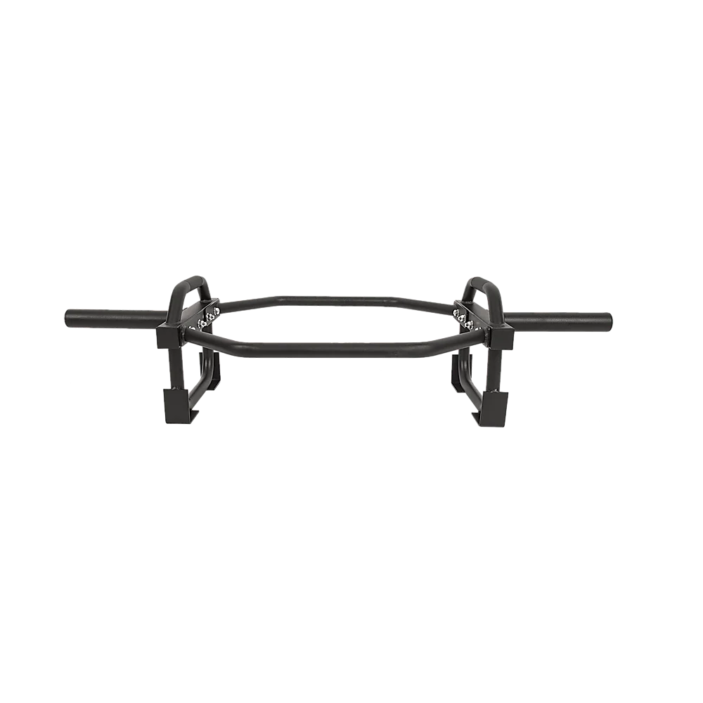 The bar features comfortable neutral-placed grips, along with elevated sleeves, reducing strain on the back and making lifting easier. The incorporated feet not only protect your floors from weights but also provide stability when loading and unloading. The medium carbon steel bolts used are of SAE 429 Grade, with a tensile strength of 74,000 PSI and a shear strength of 37,000 PSI. Constructed with tubular steel, this bar is designed to occupy minimal space in your home gym, allowing for efficient storage.