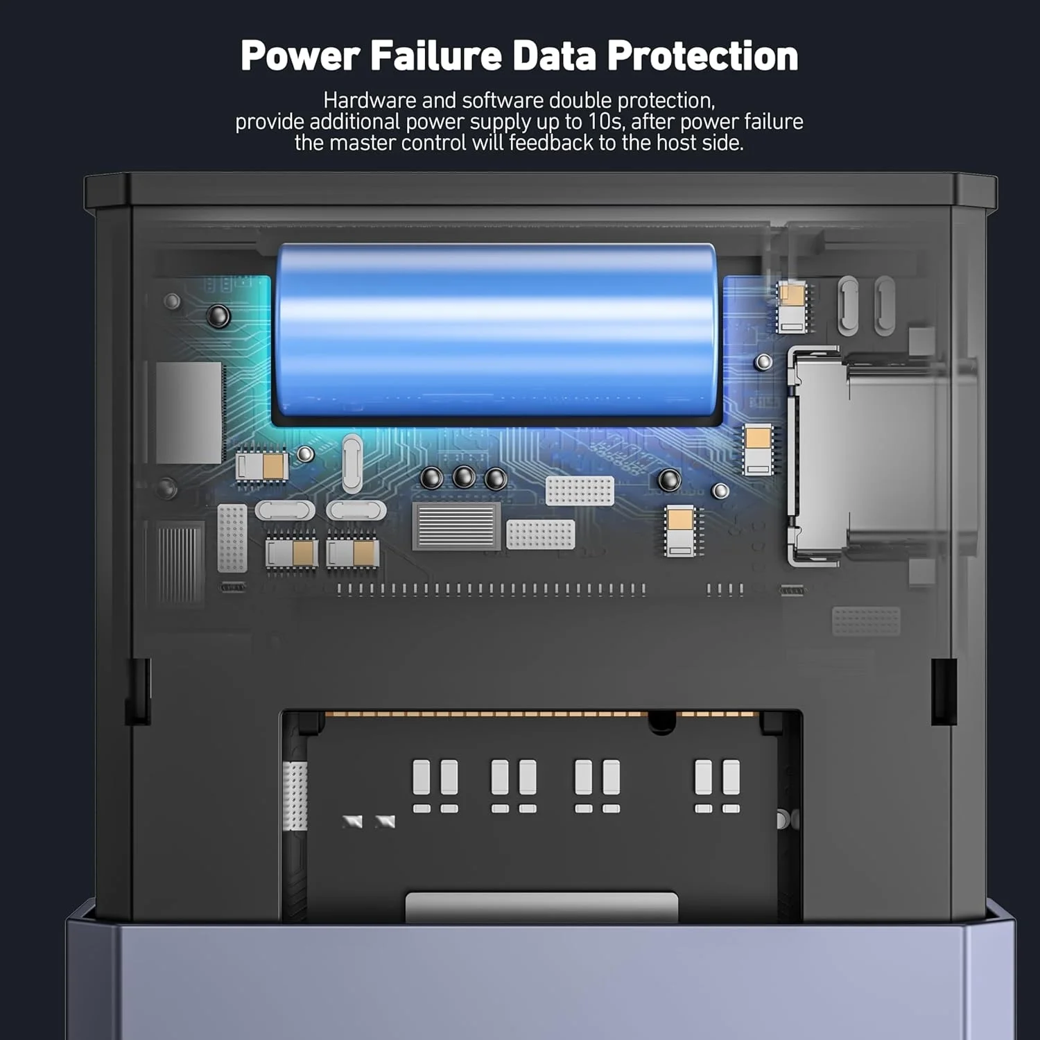 By Hardware PLP(10s) technology, Enclosure's on-board supercapacitors(EDLC) could sustain power to the SSD long enough for wirte data into flash memory when abnormal power failure happened, such as unsafe eject.
