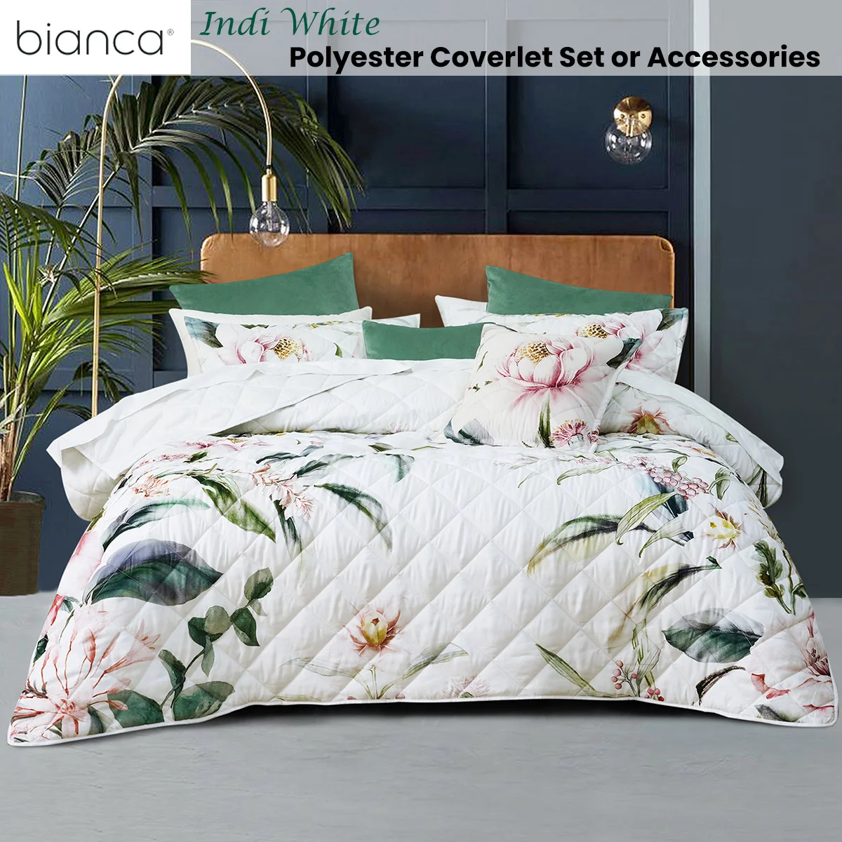 This Indi White Polyester Coverlet Set or Accessories by Bianca features a stunning floral arrangement in white, grey, yellow, green, pink, brown, blue, and black colourings perfectly positioned over Indi. This pretty hand painted design has been exclusively designed by one of our Australian designers. Quilted in a classical diamond quilting pattern, this coverlet brings a graceful elegance. Complete the look with matching Cushion at an extra cost.