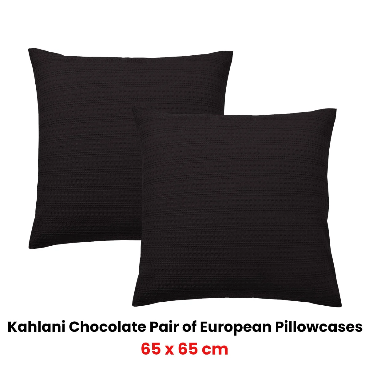 The Bianca Pair of Kahlani Chocolate European Pillowcases 65 x 65cm is made from a beautiful waffle fabric which features a horizontal jacquard design. Available in three on trend colours, Chocolate, Charcoal and sage. Features a chocolate tone that's rich and warm. Whether you're decorating a master bedroom or a guest room, these European pillowcases bring a simple elegance that suits just about any setting.