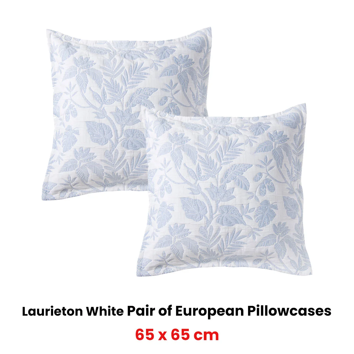 Give your bedroom the lift it needs with this stunning botanical inspired bedspread. The Bianca Laurieton Blue Jacquard Botanical Bedspread Set features a white jacquard leaf design that contrasts beautifully on a blue crisp background. The pillowcases and cushion are finished with a tailored edge. Add the coordinate european pillowcases and cushion to complete the look.