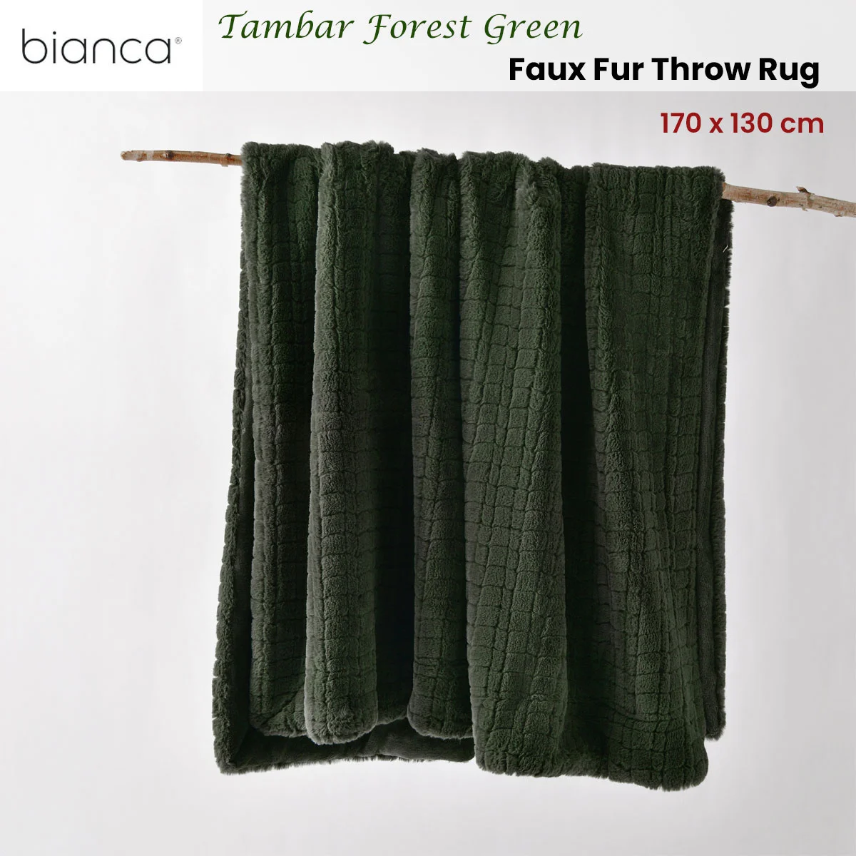 The Bianca Tambar Forest Green Faux Fur Throw Rug 130 x 170 cm a super soft faux fur that doesn't shed any fur. It also features a plush reverse fabric and this throw is stitched on all four sides. A perfect throw for winter. Drape it over your sofa or place it on the bed. Our extensive selection of throws are perfect for any space and are crafted from the softest yarns available.