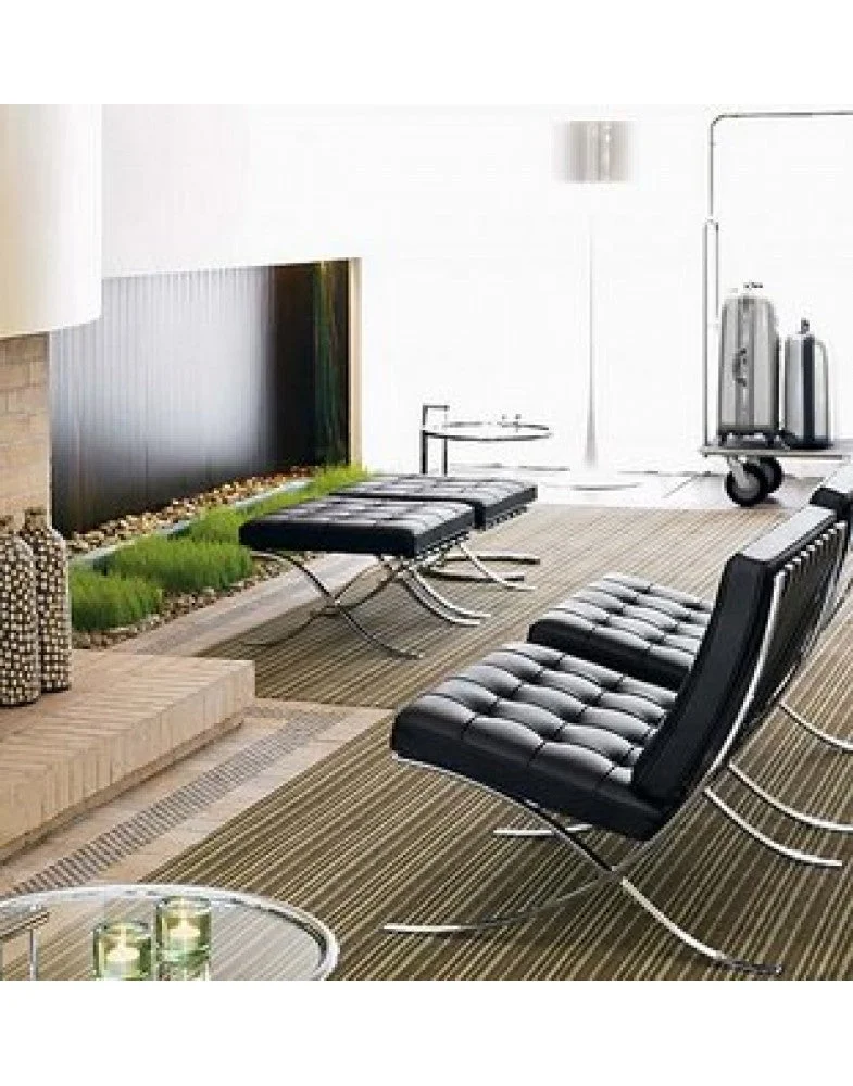 The Barcelona Chair was exclusively designed by Mies van der Rohe for the German Pavilion, that country's entry for the International Exposition of 1929, which was hosted by Barcelona, Spain. An icon of modernism, the chair's design was inspired by the campaign and folding chairs of ancient times.