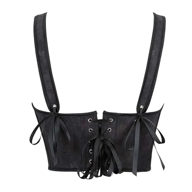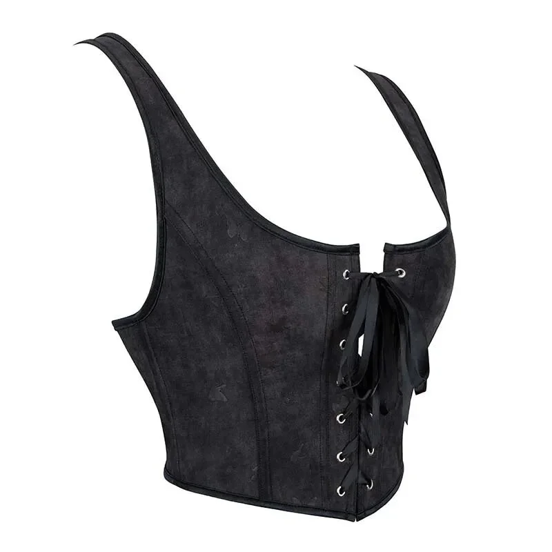 Brown Steampunk Corset With Front Busk Closure Floral Lace And Puff Sleeves - Brown - 4Xl