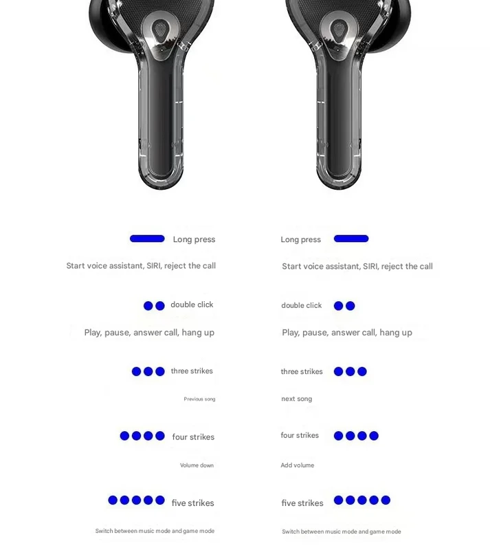 - Full-Featured Touch Controls: In addition to the case controls, each earbud features intuitive multi-tap commands for managing music, calls, volume, and switching between music and game modes.