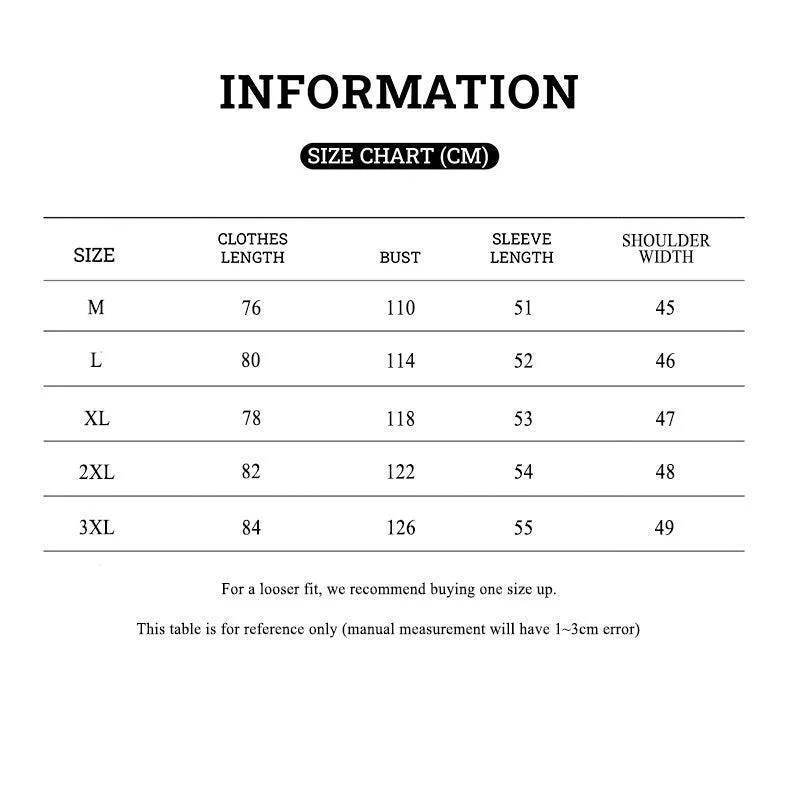 Size 3XL:Bust:126cm;Shoulder:49cm;Length:84cm
