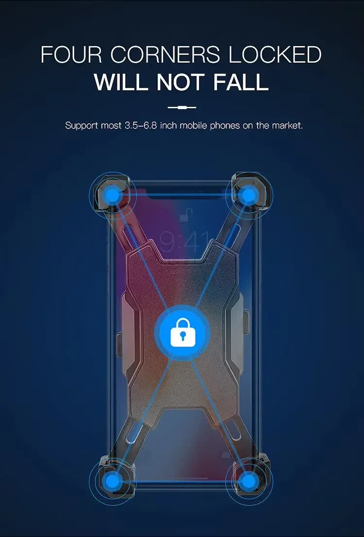 • Ultra-Secure Four-Corner Grip: The mechanical locking mechanism with four sturdy arms firmly locks your device in place, providing exceptional stability. It is designed to hold your phone securely even on bumpy trails and rough mountain roads.