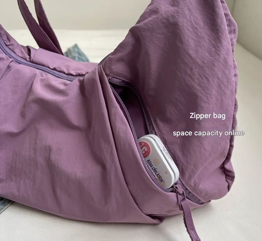 Embrace a relaxed yet chic aesthetic with this versatile crescent-shaped crossbody bag. Its trendy slouchy, or 'dumpling', silhouette is crafted from lightweight nylon, making it the ideal accessory for everything from daily commutes and gym sessions to casual weekend outings. It's designed to be effortlessly stylish and incredibly practical.