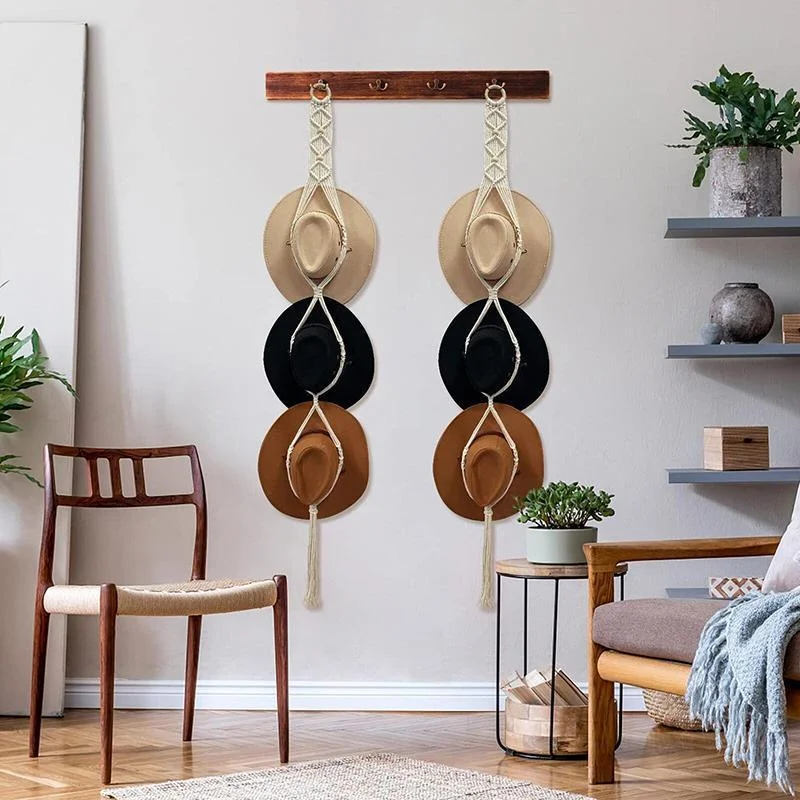 Introducing the Bobohemian Hat Rack Storage - a blend of durability and bohemian elegance. Crafted from high quality cotton thread, this hat rack not only ensures longevity, but also offers a tactile experience that embodies comfort and sophistication. Its intuitive design ensures easy installation and use, providing a unique and practical solution for storing and displaying your hats. The classic boho aesthetic combined with its practicality makes it a statement piece that is sure to attract attention and admiration.
