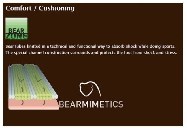 Using unique BearZones Bear-Tubes, these BRBL socks provide moisture management, better oxygenation, and reinforced areas for less friction between the skin and the fabric.