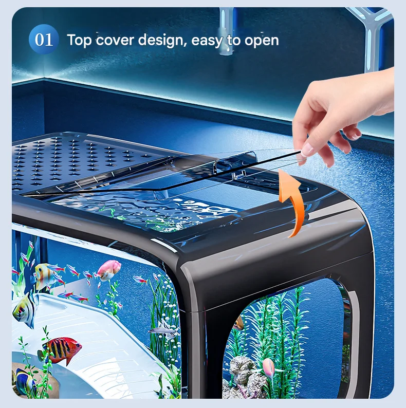 Everything you need to start your aquatic journey is right here in this complete starter kit. Featuring a sleek, modern tank with a stunning panoramic view, this package includes essential decorations and accessories to help you create a beautiful underwater world instantly. It's the perfect choice for beginners and an ideal home for small fish, shrimp, or turtles.