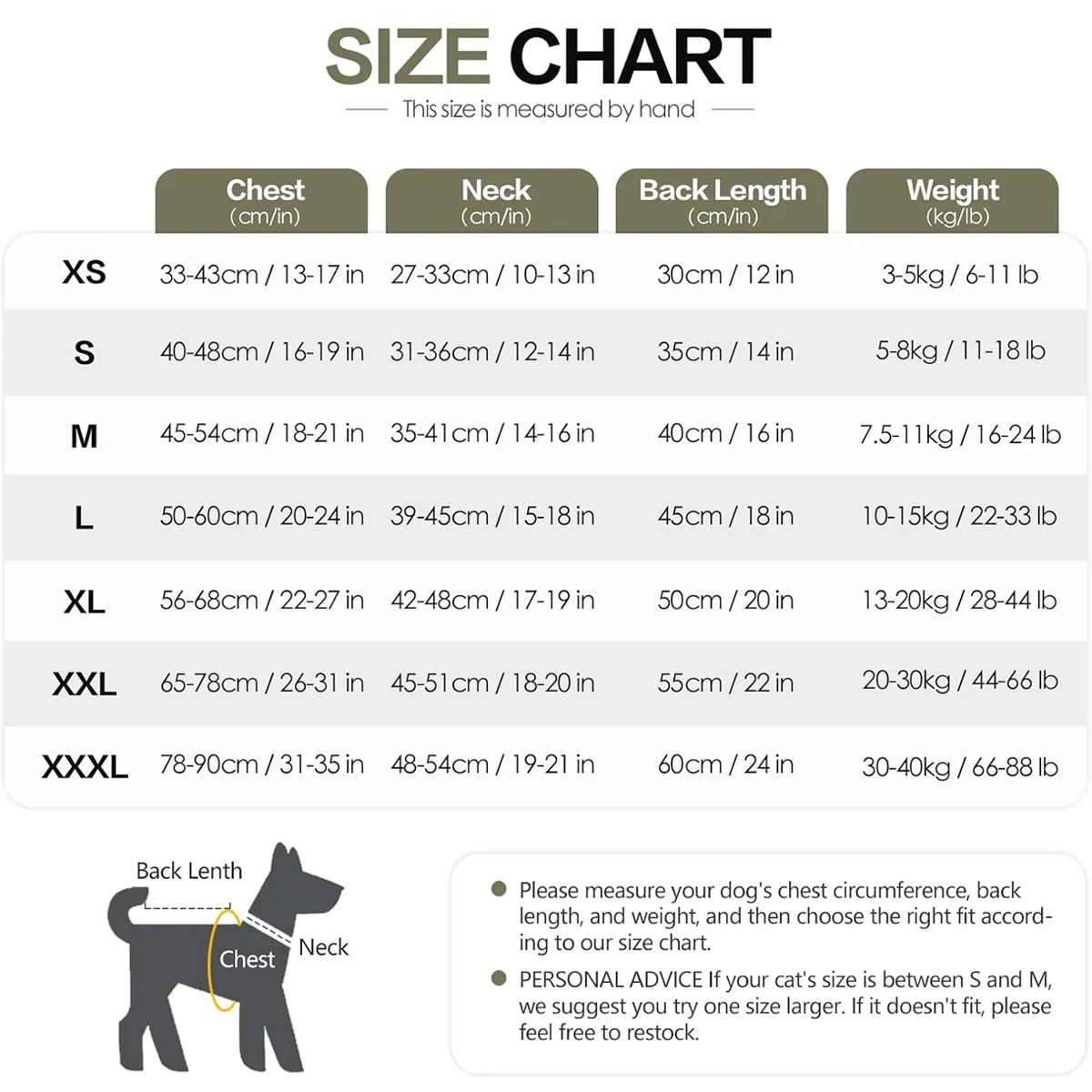 Please measure your dog's chest, neck, and back length before ordering.