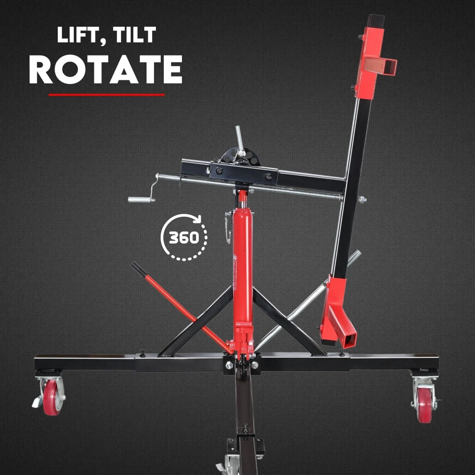 This 2000 lb. capacity rotisserie is a cost-effective solution that keeps your work smart. It features dual hydraulic cylinders that lift the lifting framework to the desired working height for those unreachable areas. In addition, it has a resistant powder coat finish to prevent rust and four locking casters from keeping your rotisserie stable while you work.