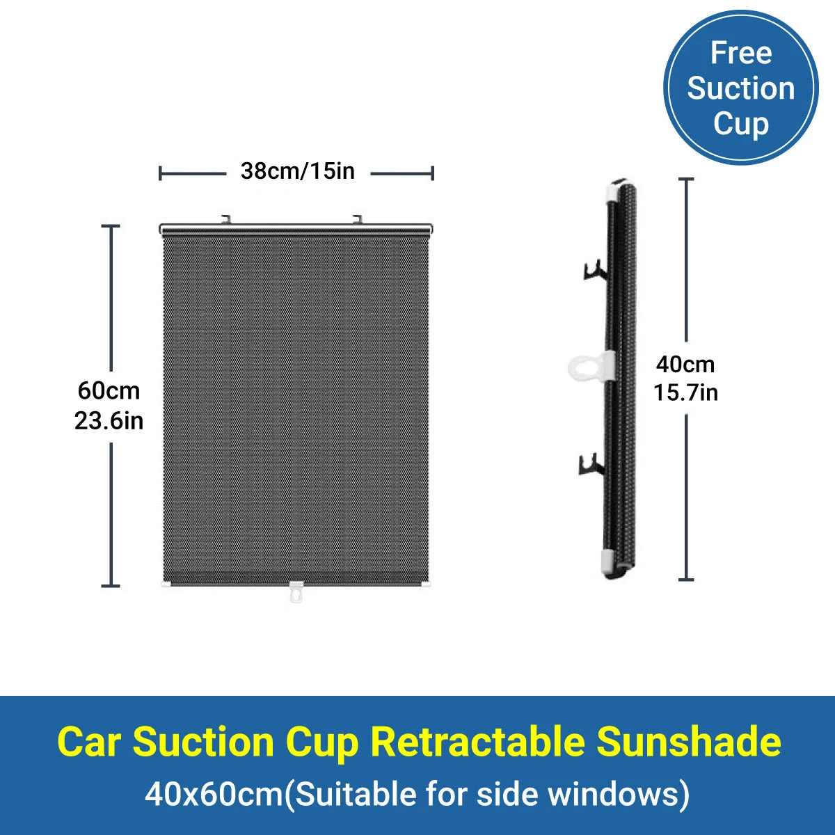This retractable car window sunshade offers quick and effective protection against glare, UV rays, and heat.With a user-friendly roll-up design and included suction cups, it installs easily on side or rear windows.Available in two sizes, it provides wide coverage while maintaining driver visibility.Suitable for cars, offices, kitchens, or balconies.