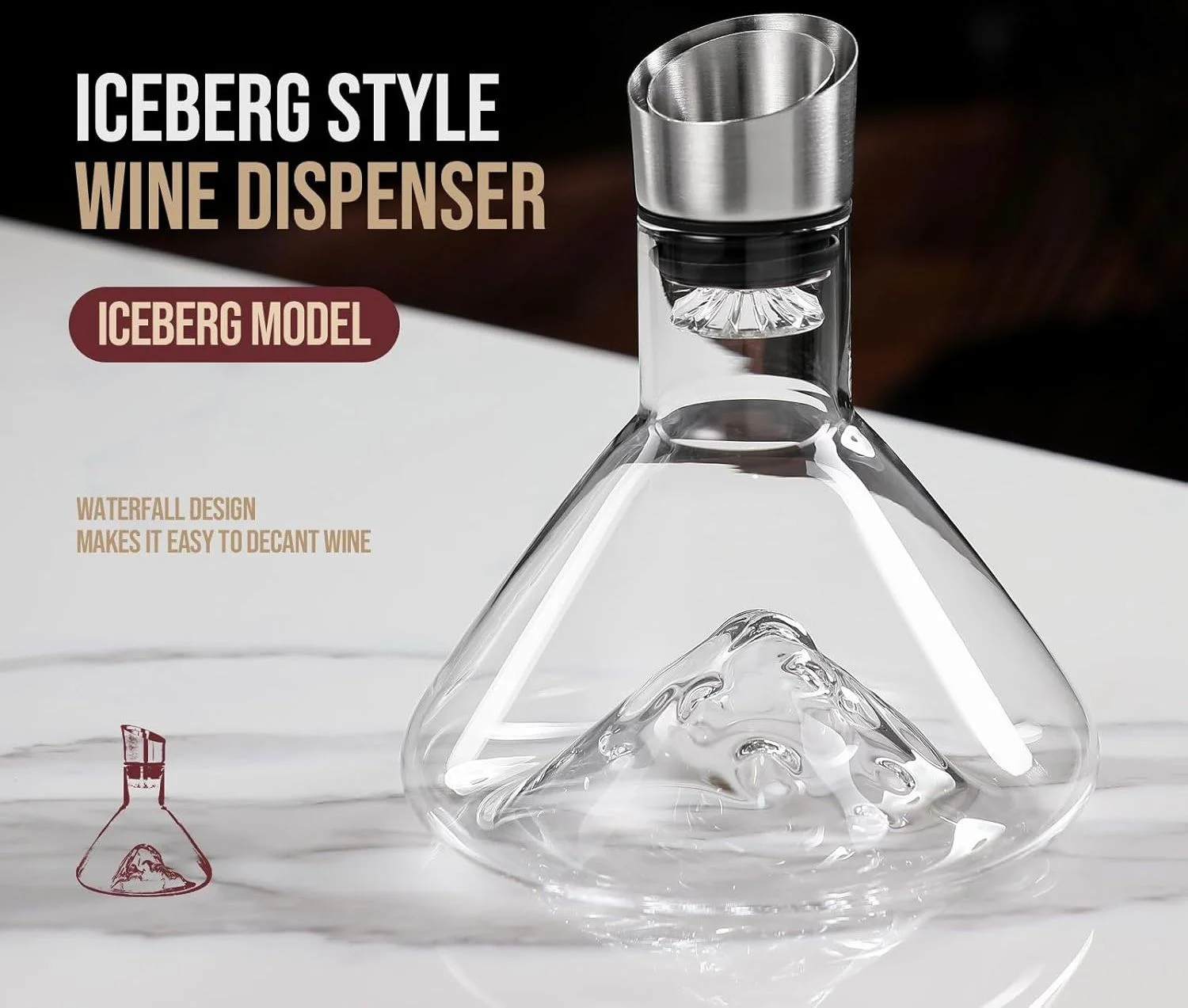 - ICEBERG-INSPIRED ARTISTIC BASE: Featuring a sculpted iceberg-style bottom, this carafe combines visual elegance with functional design. The uneven base increases oxygen contact, elevating every sip of your red wine.