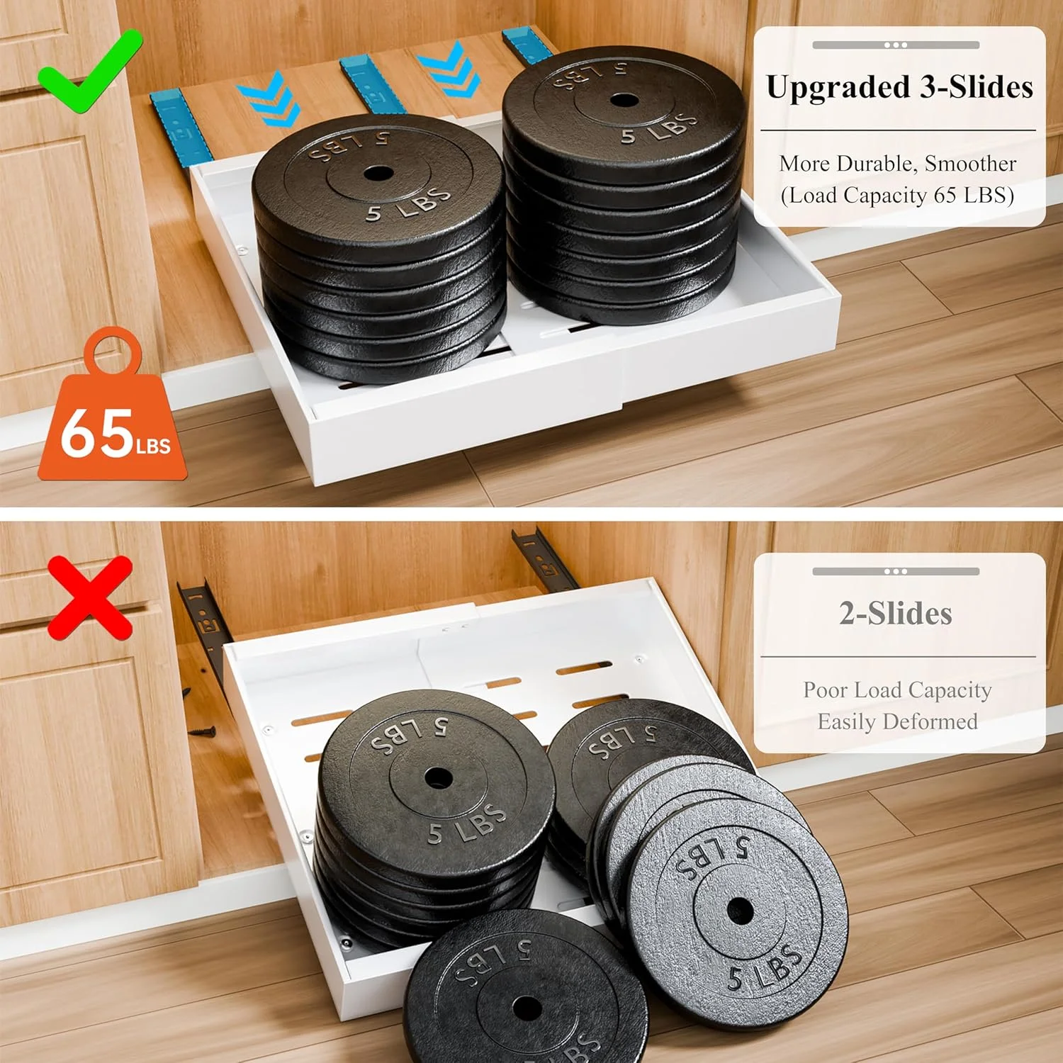 CARLA HOME Pack Pull Out Cabinet Organizer Expandable for Cabinets with Adjustable Slide Out Shelves and Easy Installation (White)