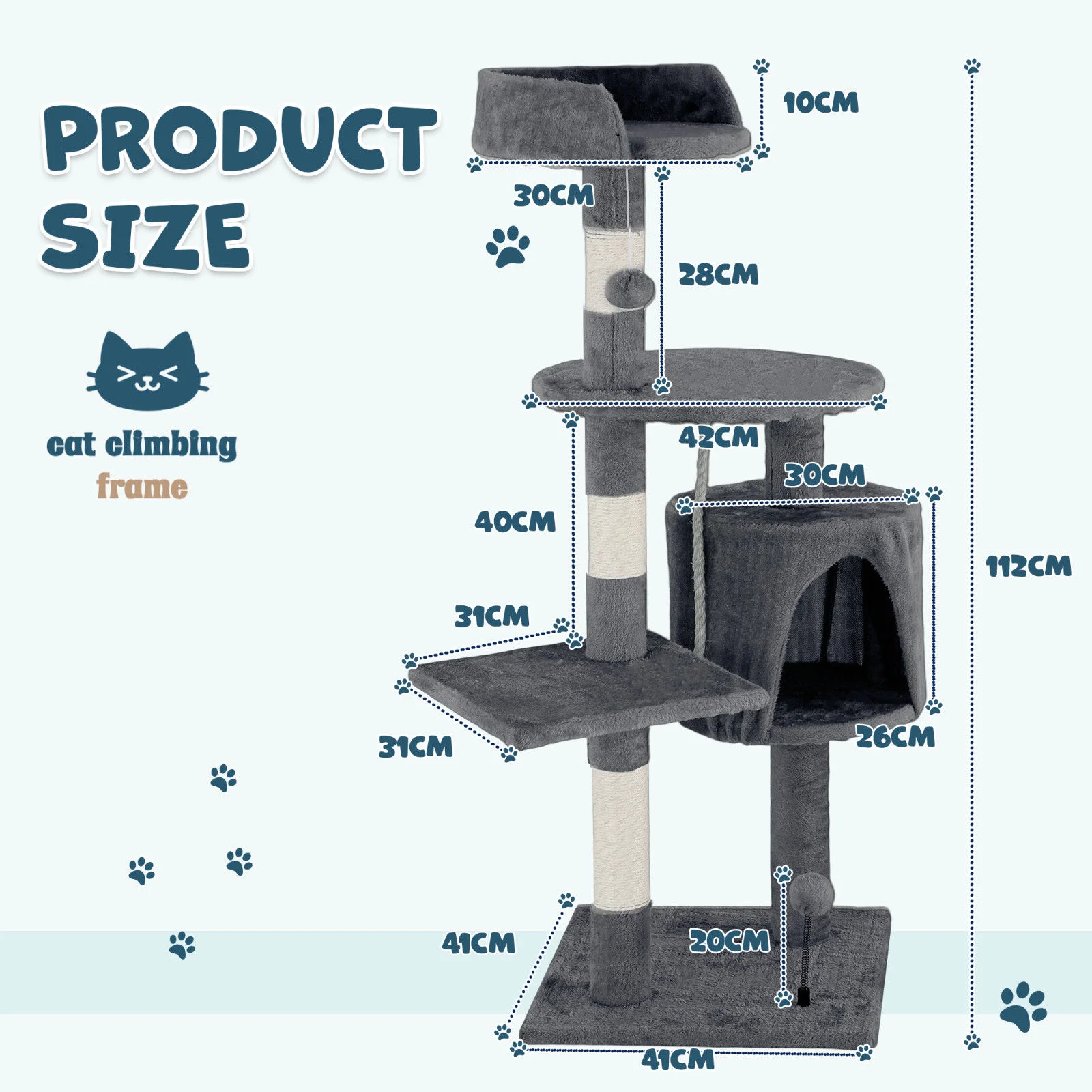 Cat Tower Tree Scratching Post Dark Grey Condo 112cm